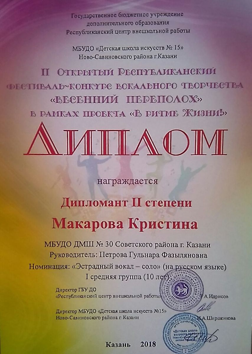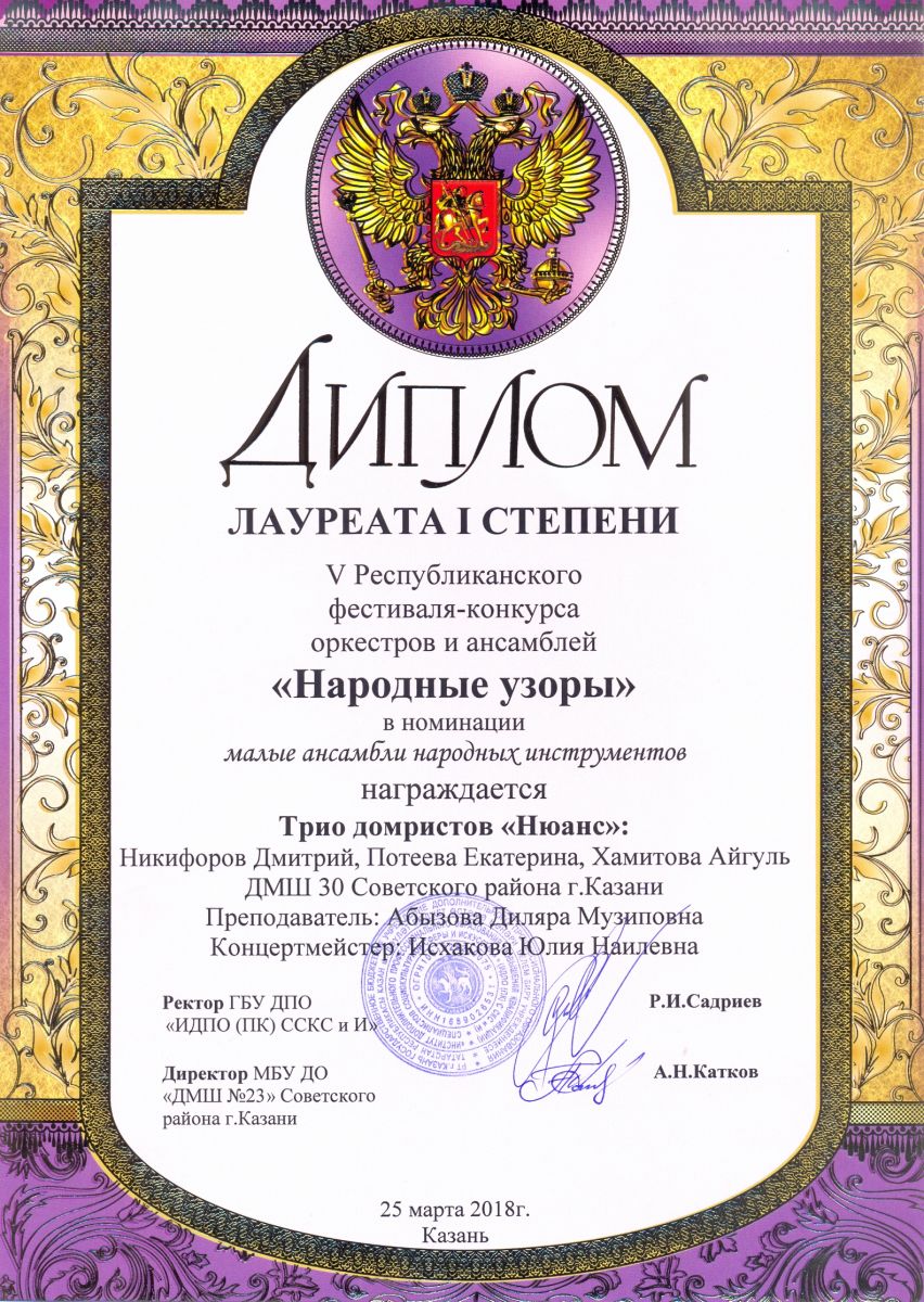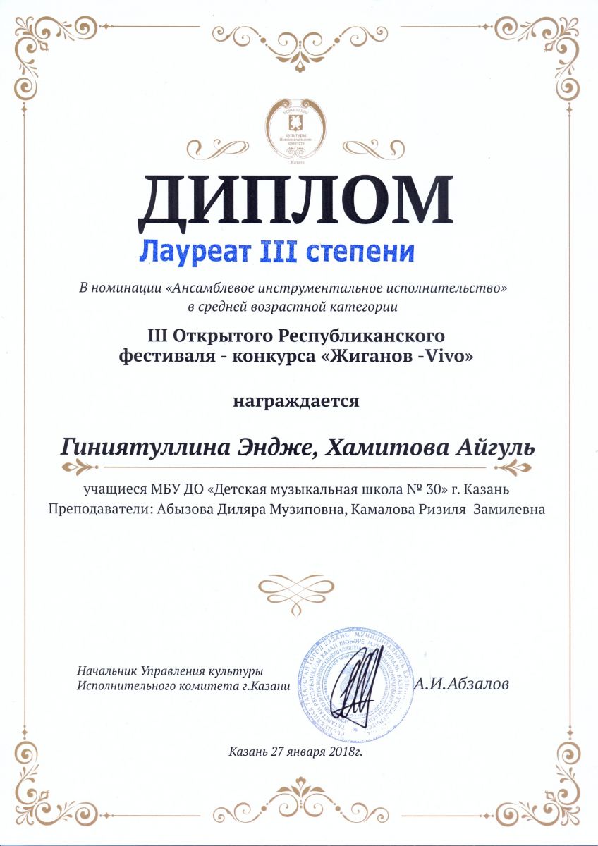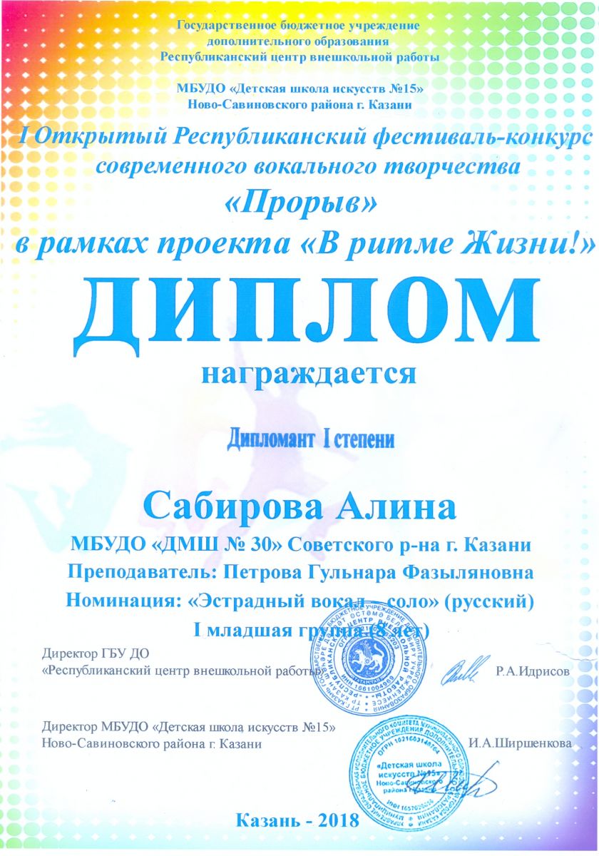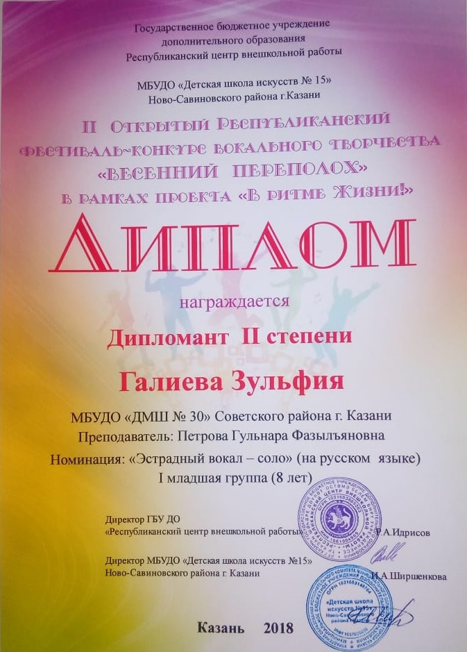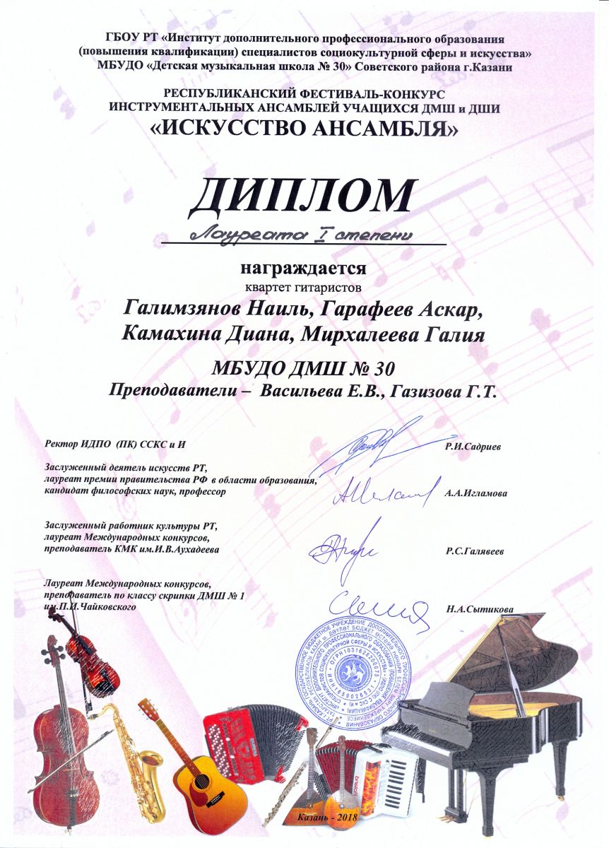 Республиканский конкурс пианистов "Музыкальная мозаика" - Ситдикова Лия - диплом I степени