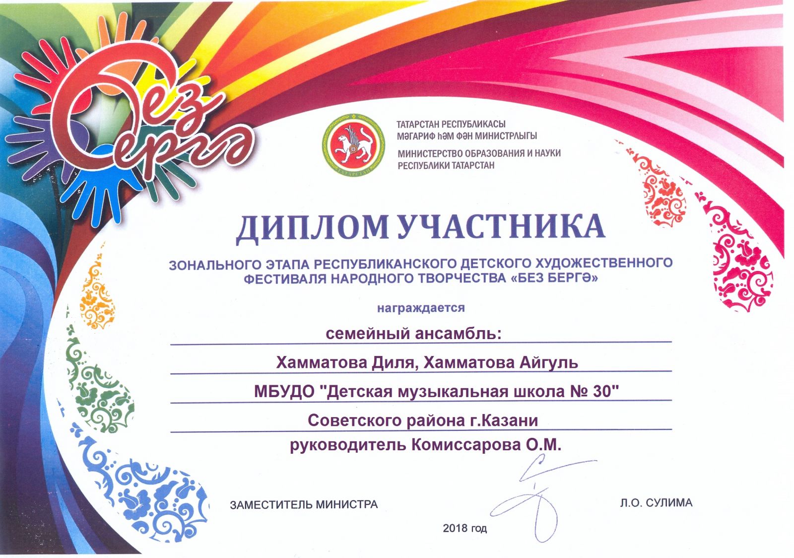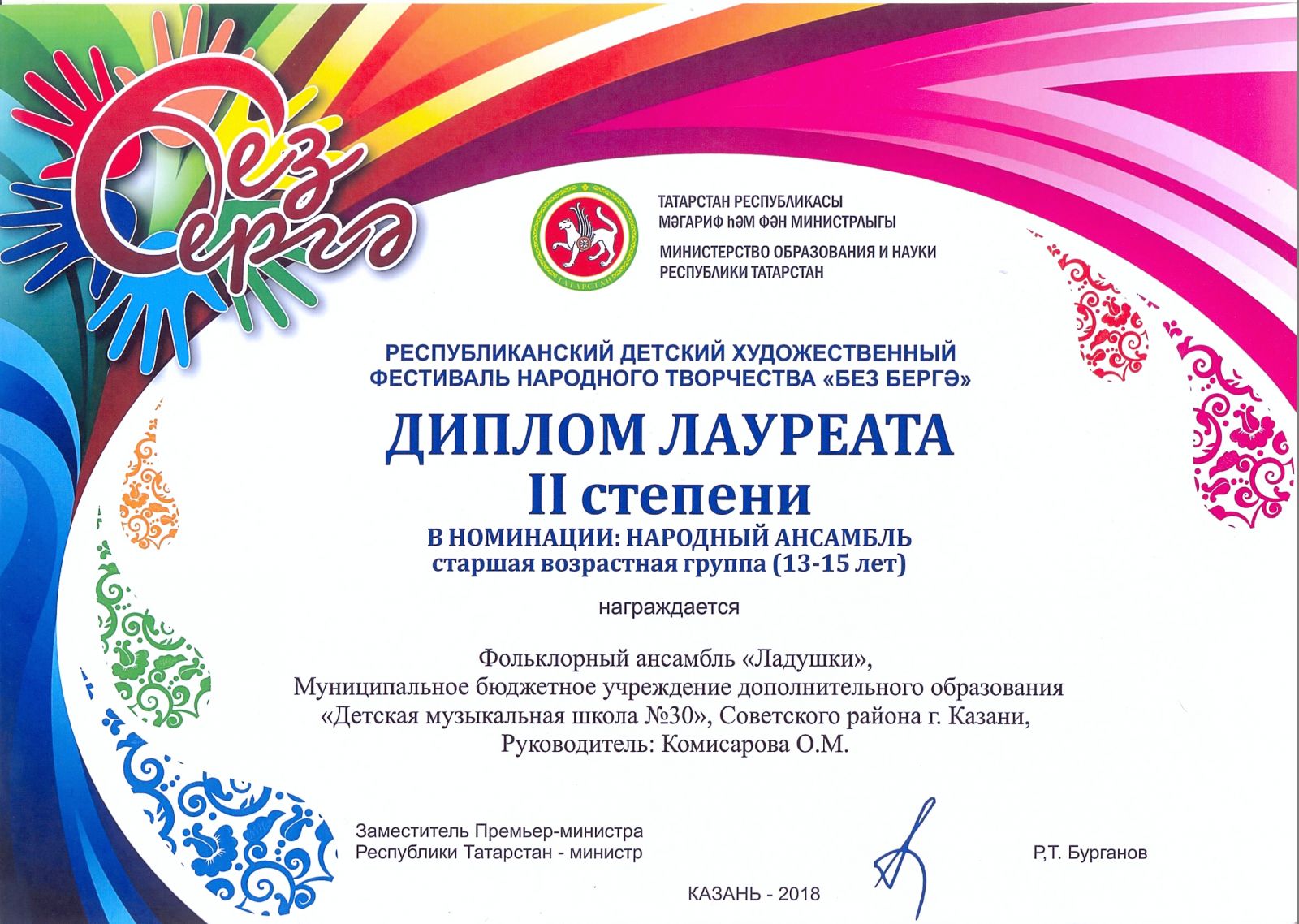 Республиканский детский художественный фестиваль народного творчества "Без бергә" - фольклорный ансамбль "Ладушки" - II место