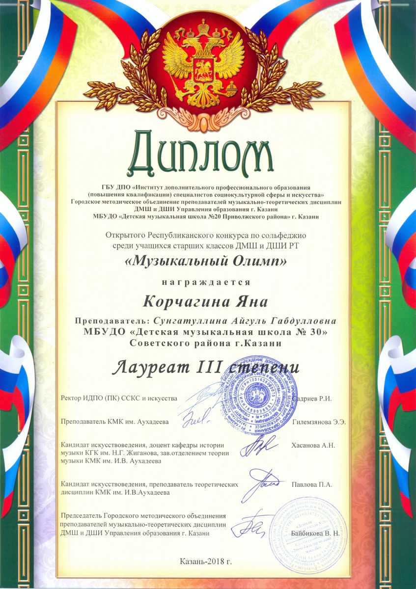 Республиканский конкурс пианистов "Музыкальная мозаика" - Кулеш Ольга - диплом III степени