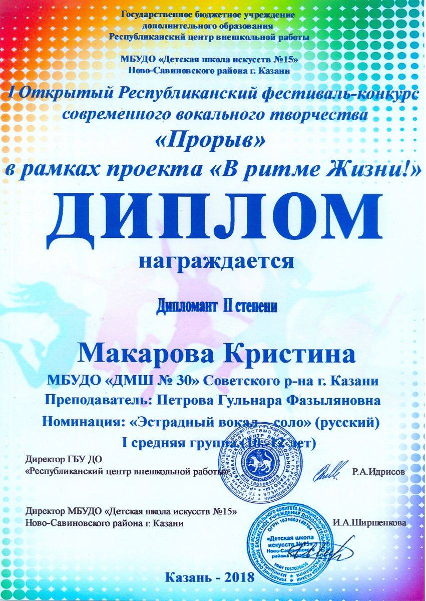Республиканский конкурс пианистов "Музыкальная мозаика" - Мамыкина Софья - диплом II степени