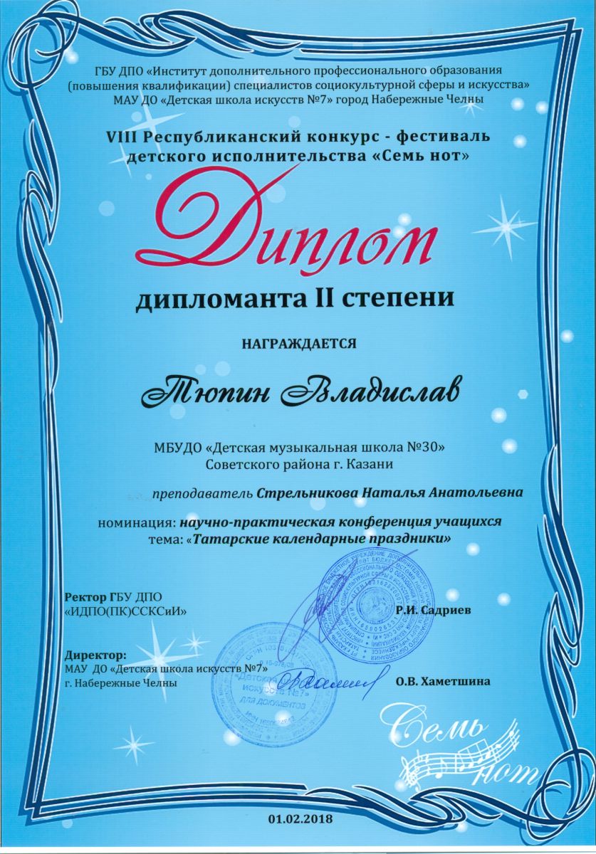 Республиканский конкурс пианистов "Музыкальная мозаика" - Ситдикова Самира - диплом II степени