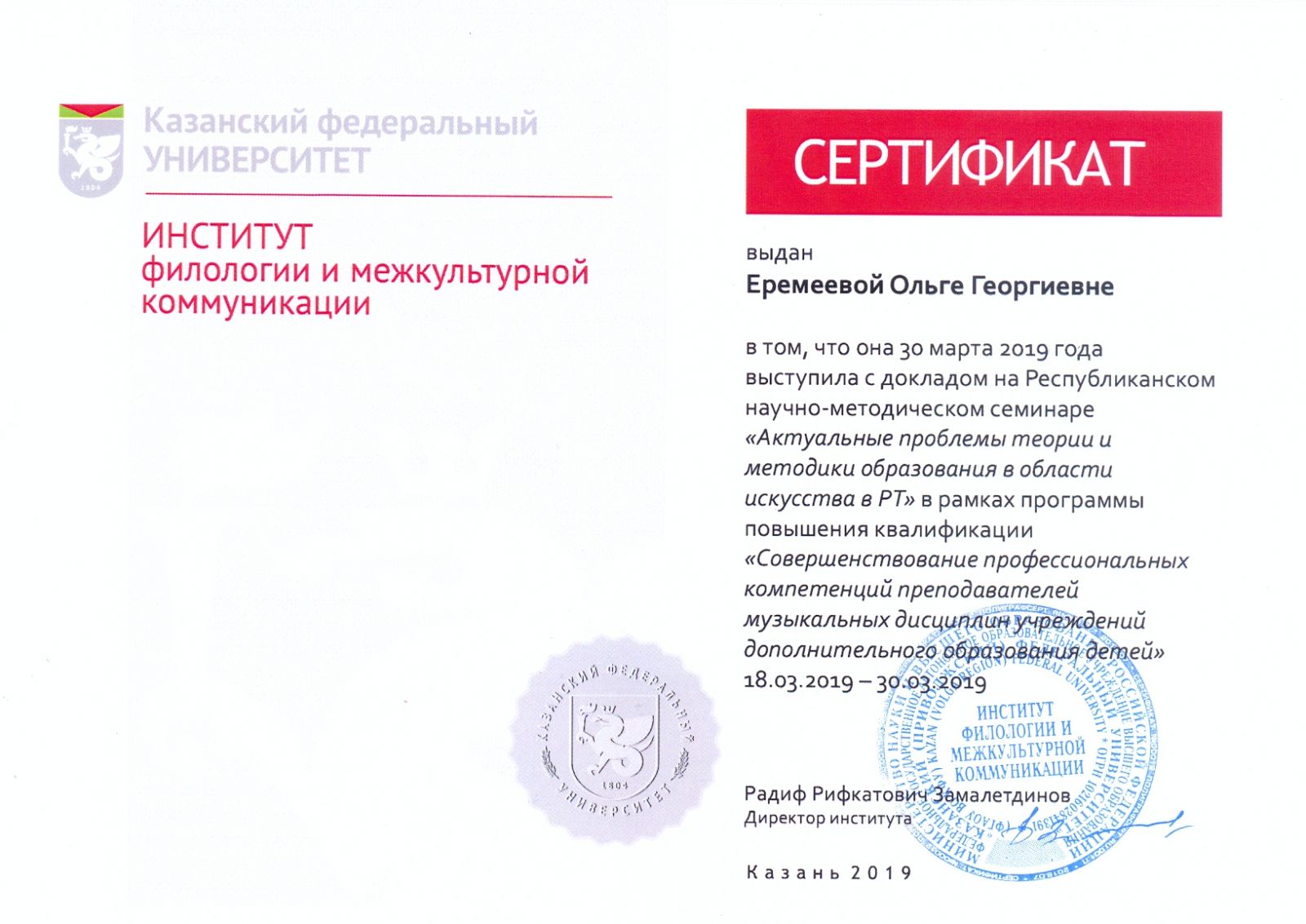 II Всероссийская научно-практическая конференция "Балакиревские чтения 2019. Образовательное пространство ДШИ: потенциал оновления" - Газизова Г.Т. - сертификат участника