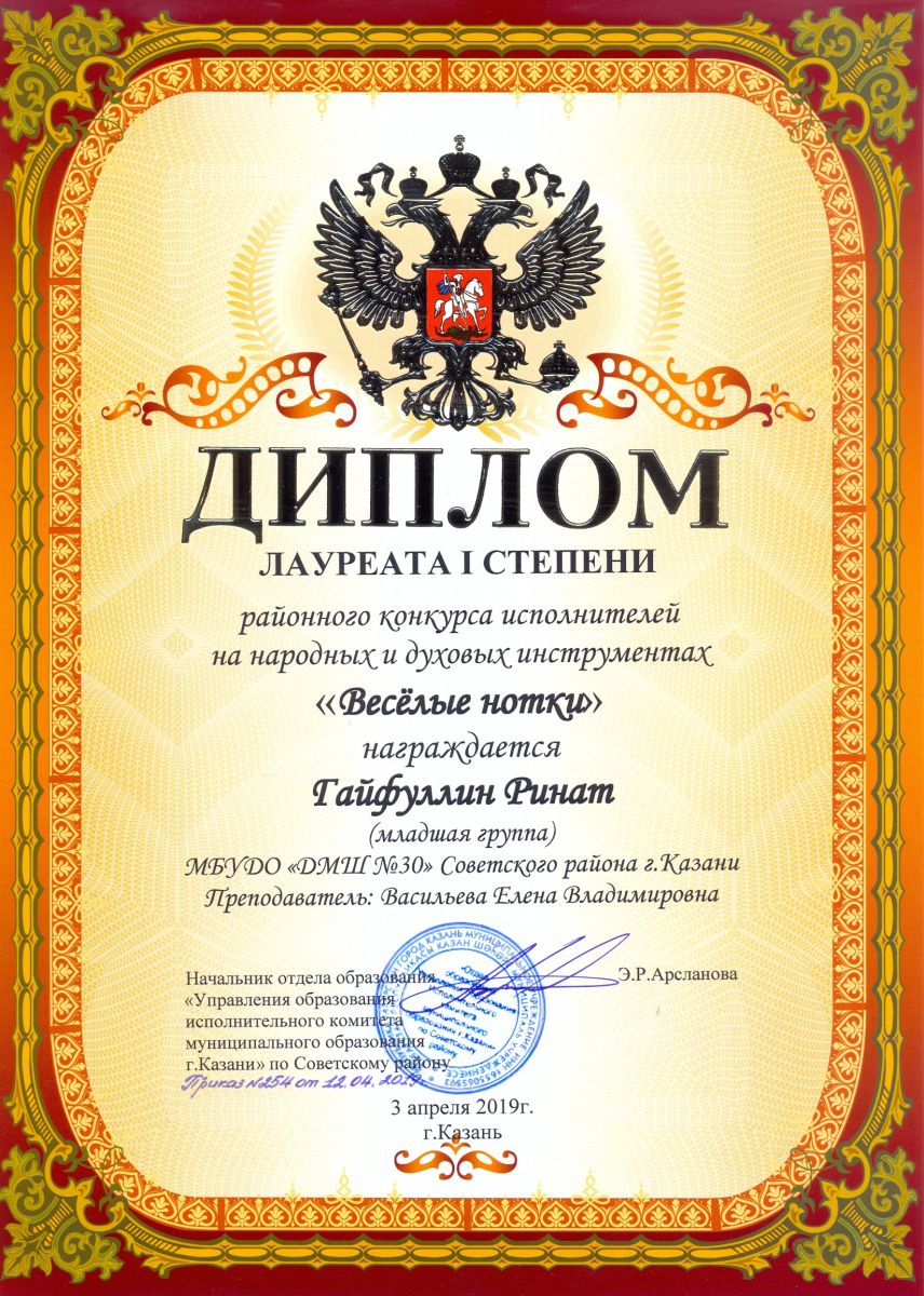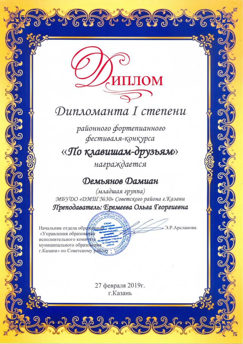 Районный фортеианный фестиваль-конкрус "По клавишам-друзьям" - Демьянов Дамиан - диплом I степени