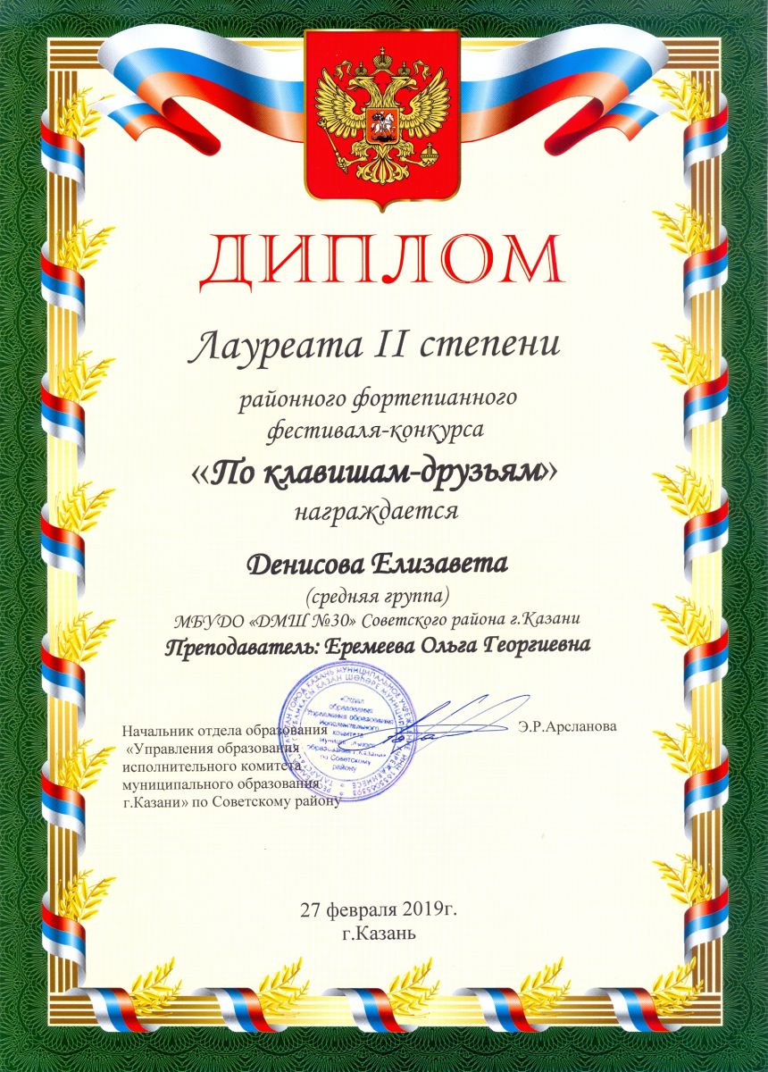 Районный фортеианный фестиваль-конкрус "По клавишам-друзьям" - Денисова Елизавета - II место