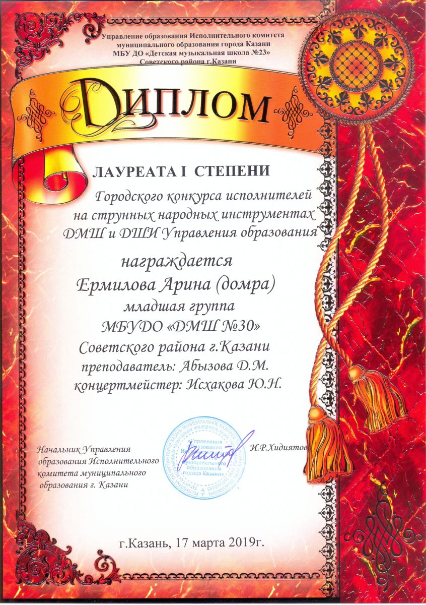 Городской конкурс исполнителей на струнных народных инструментах - Ермилова Арина - I место