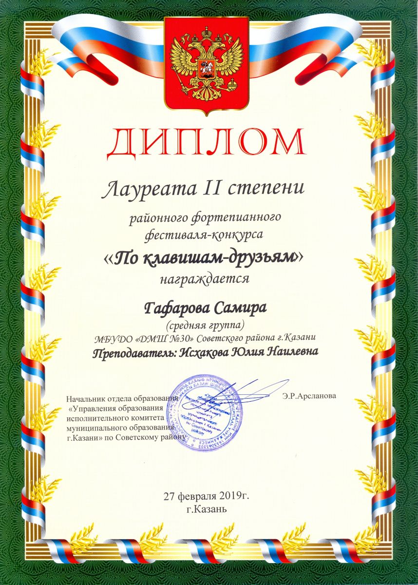 Районный фортеианный фестиваль-конкрус "По клавишам-друзьям" - Гафарова Самира - II место