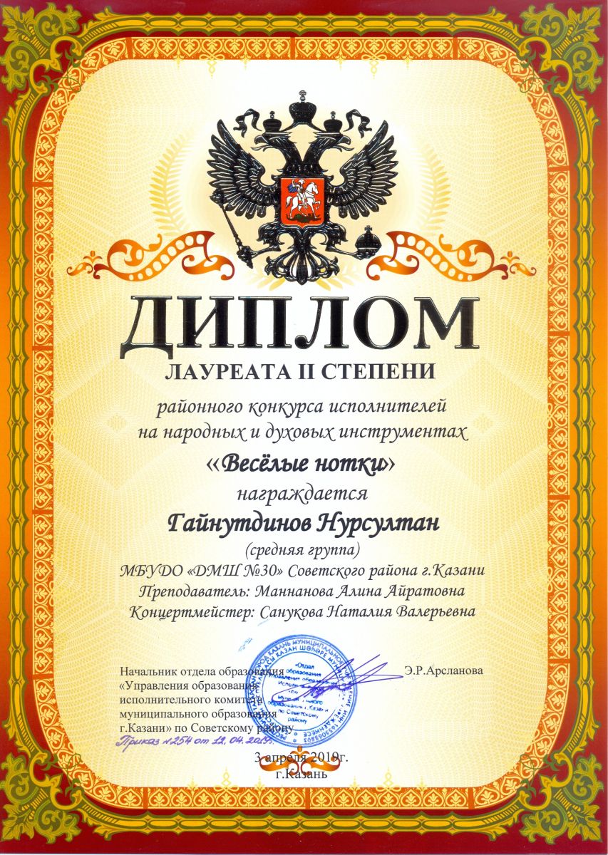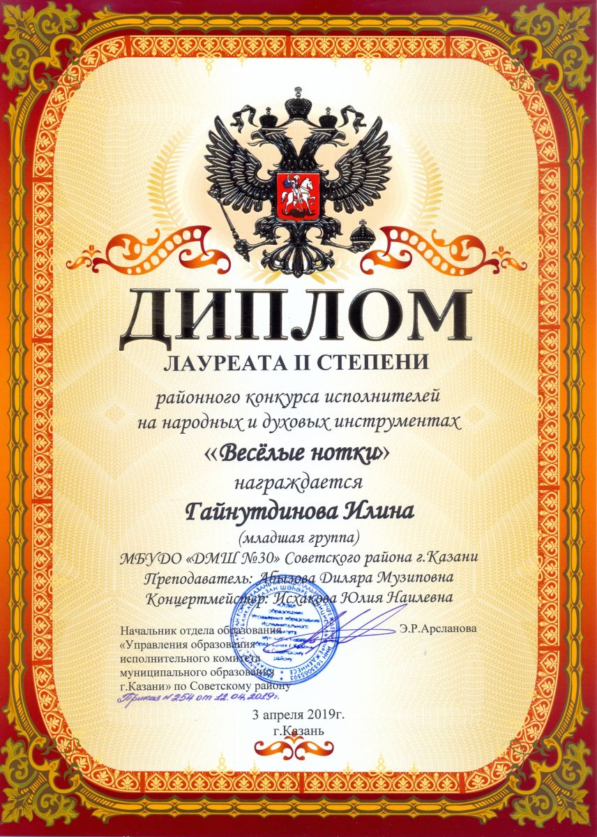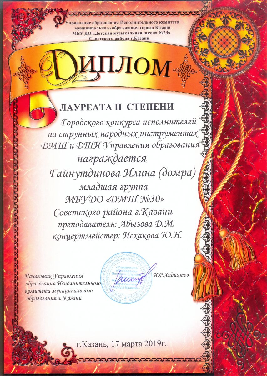 Городской конкурс исполнителей на струнных народных инструментах - Гайнутдинова Элина - II место