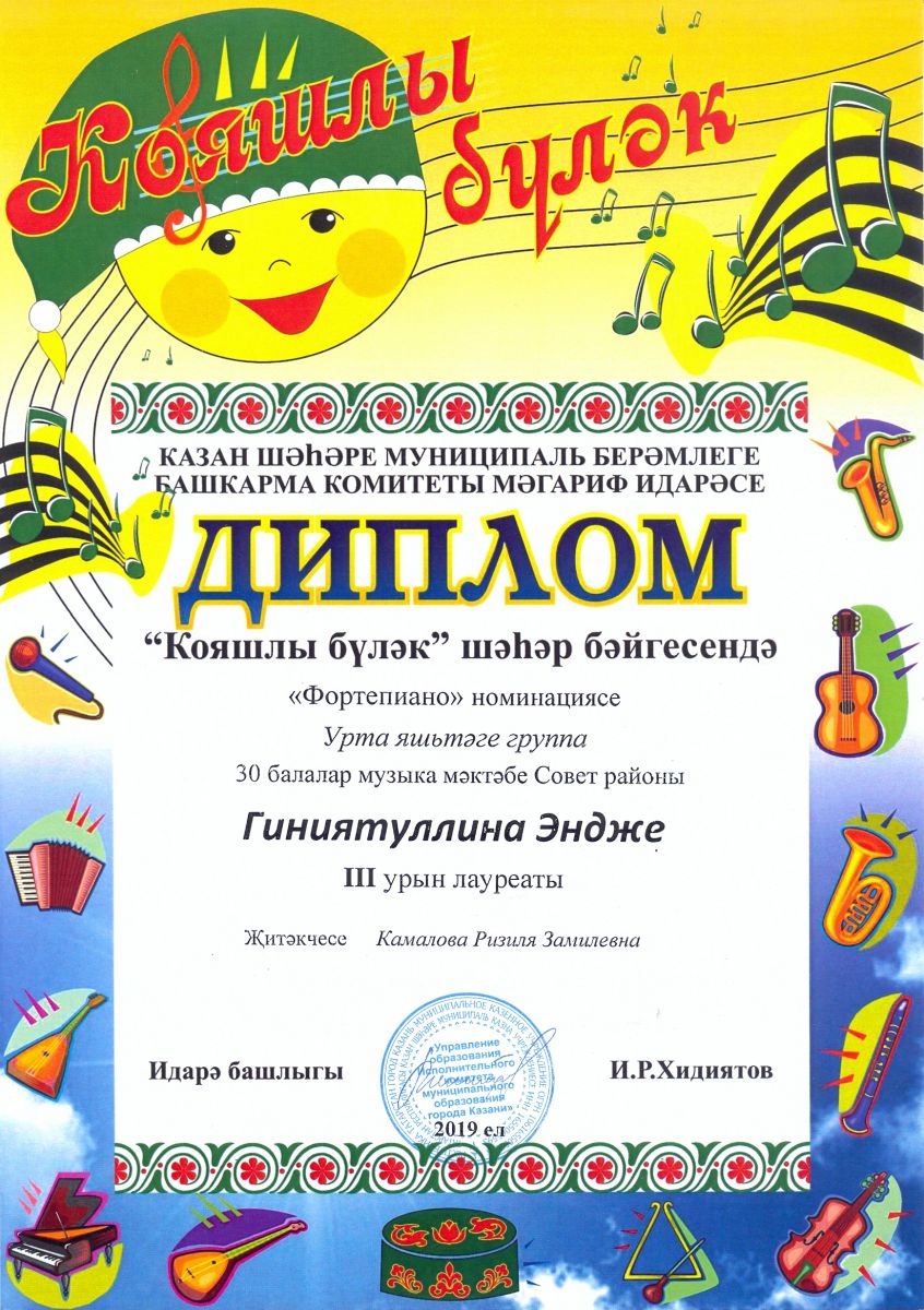 Городской конкурс татарской музыки "Кояшлы бүләк" - Гиниятуллина Эндже - III место