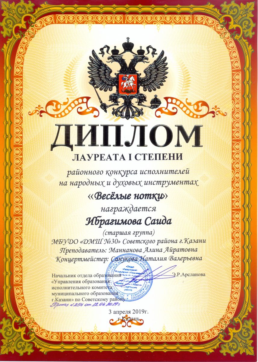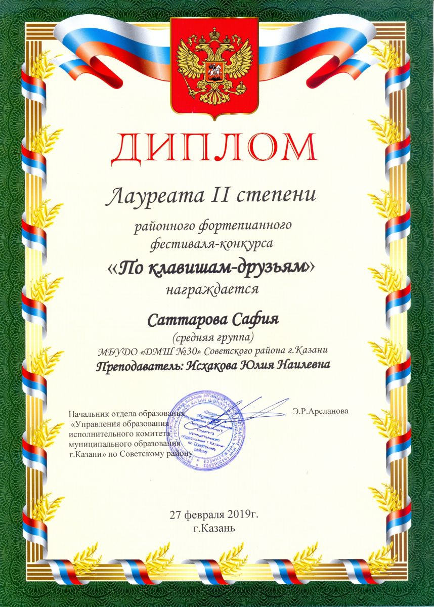Районный фортеианный фестиваль-конкрус "По клавишам-друзьям" - Саттарова Сафия - II место