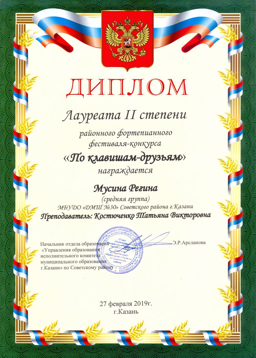 Районный фортеианный фестиваль-конкрус "По клавишам-друзьям" - Мусина Регина - II место