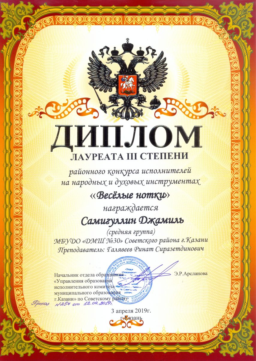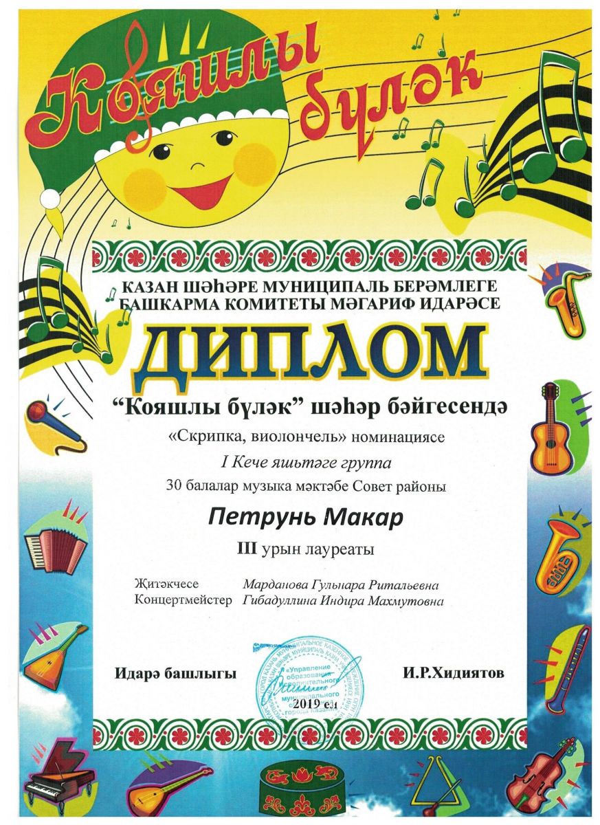 Городской конкурс татарской музыки "Кояшлы бүләк" - Петрунь Макар - III место