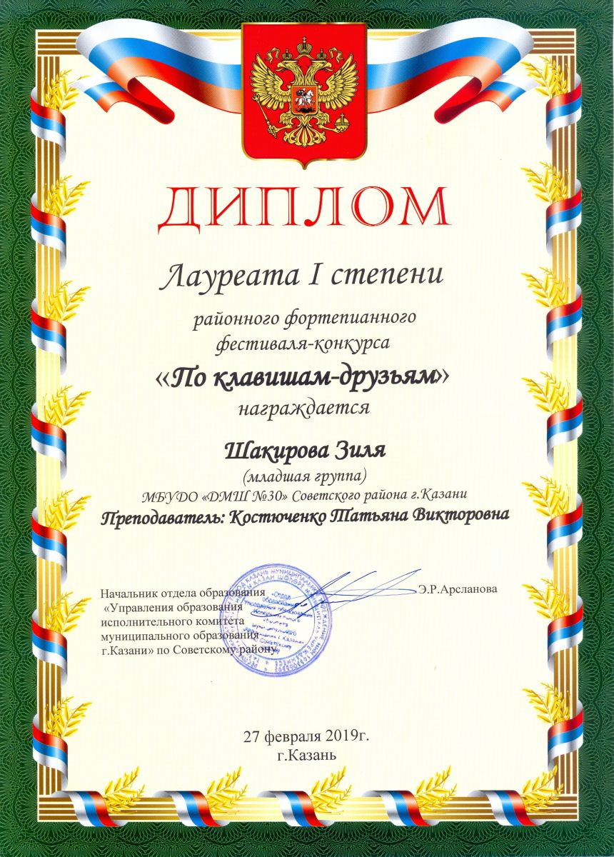 Районный фортеианный фестиваль-конкрус "По клавишам-друзьям" - Шакирова Зиля - I место