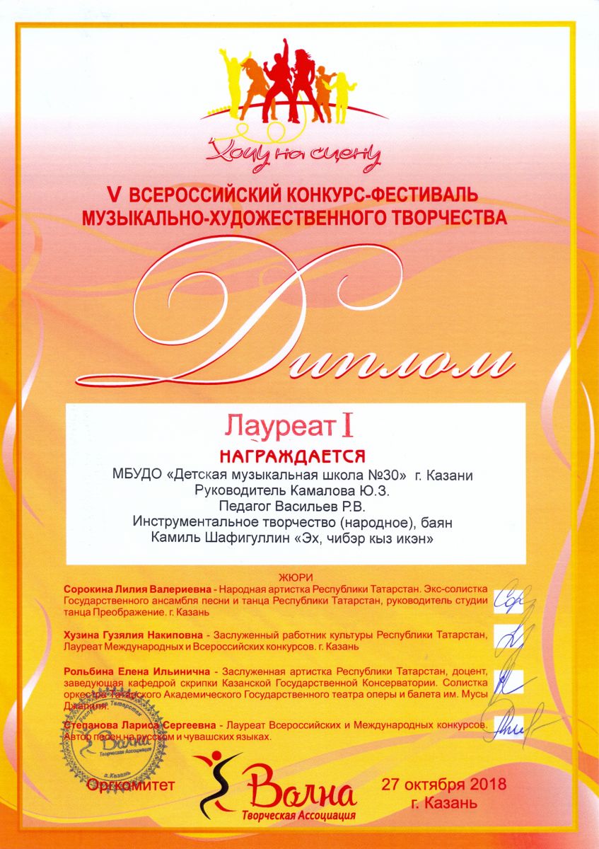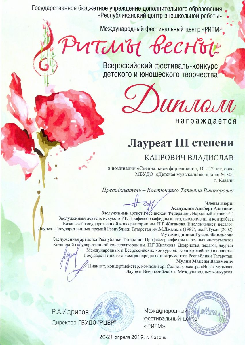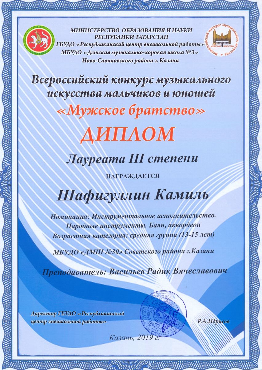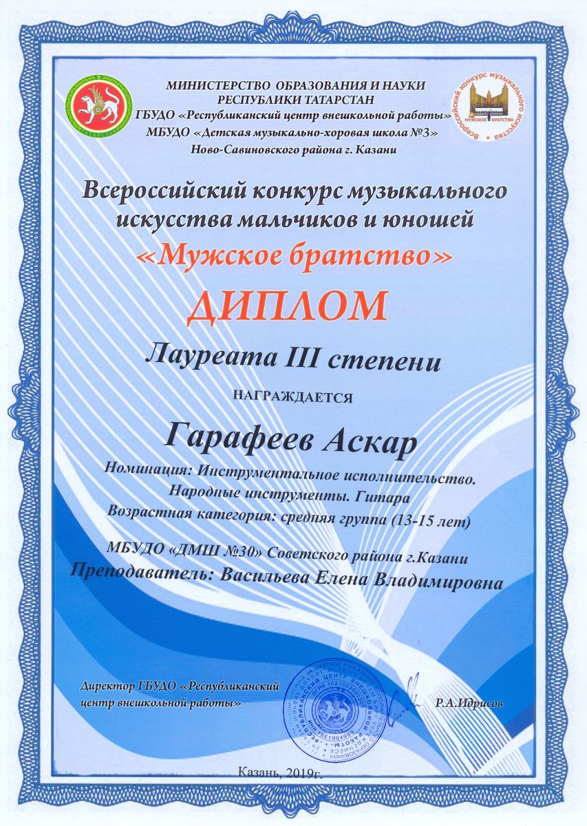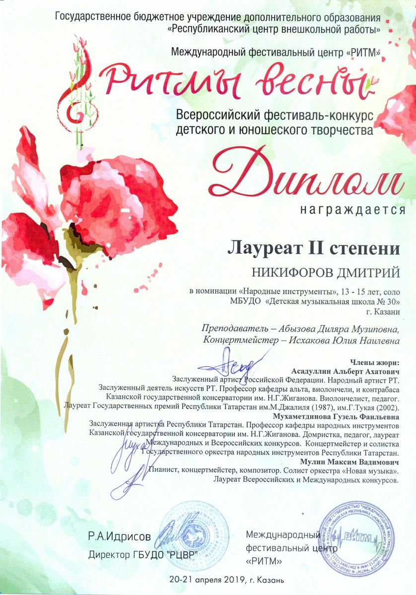 Всероссийский фестиваль-конкурс "Вдохновение" - Ахметзянов Муса - III место