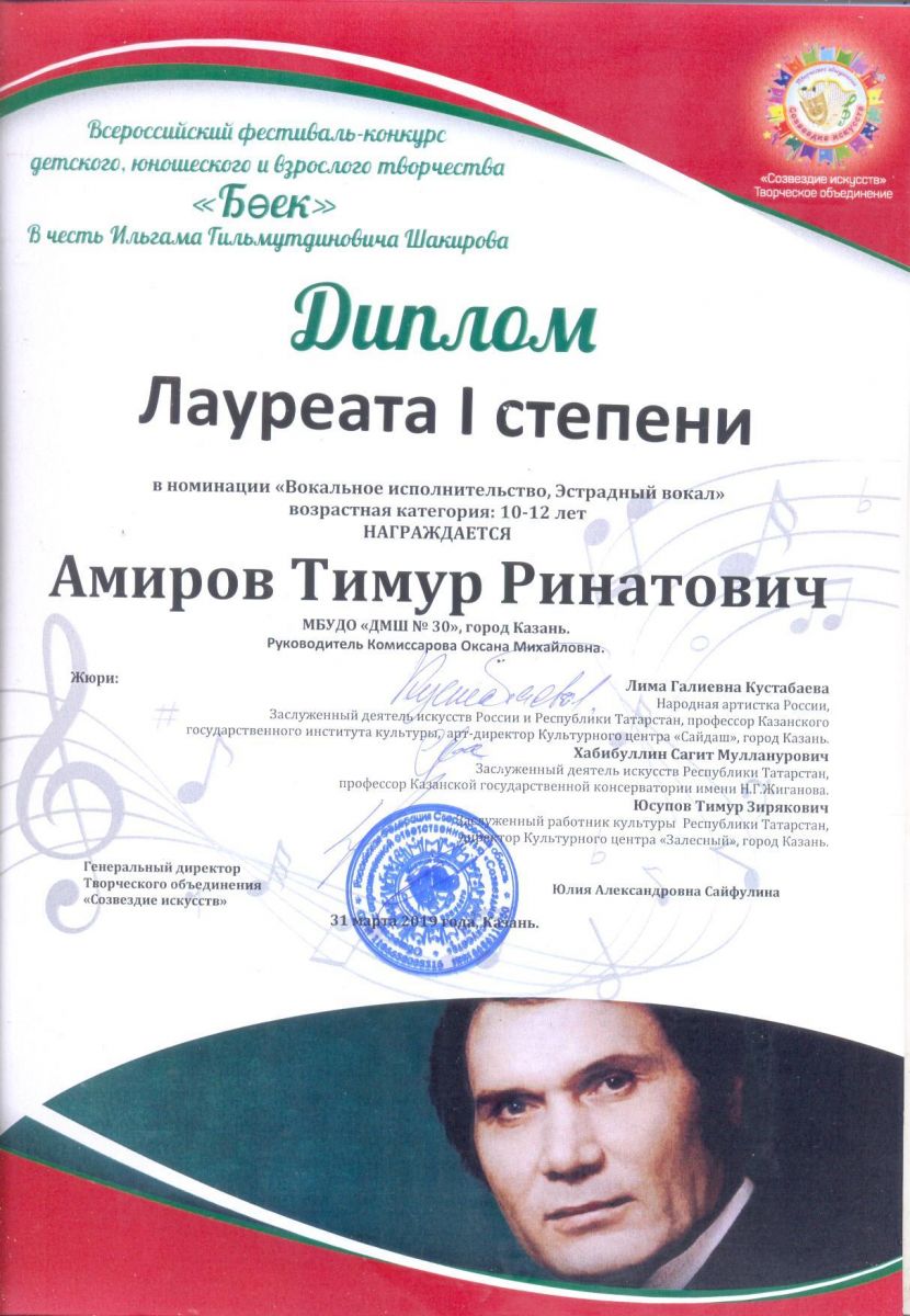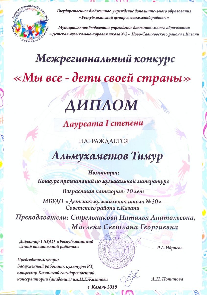 Межрегиональный конкурс "Мы все - дети своей страны" - Альмухаметов Тимур - I место