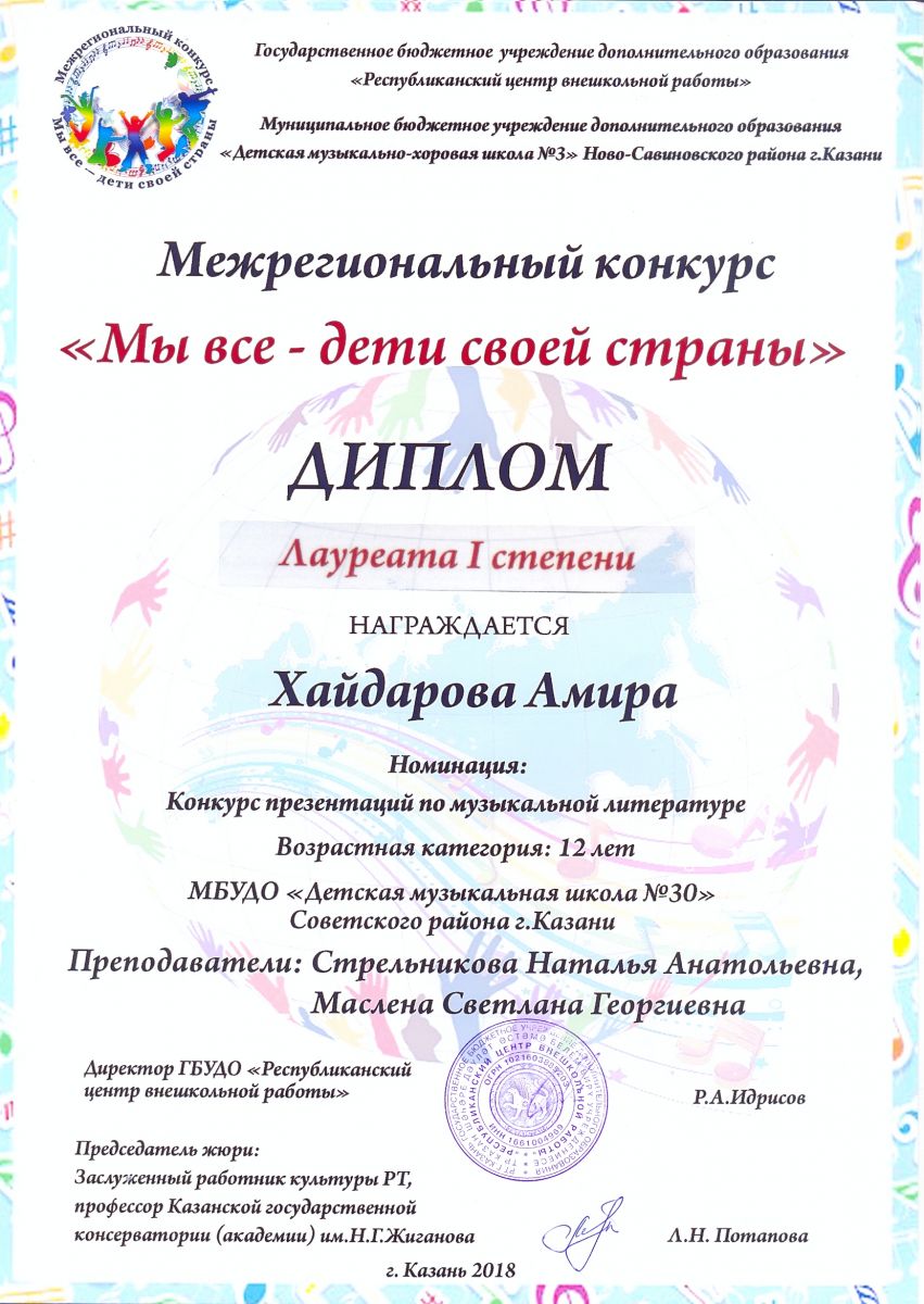 Межрегиональный конкурс "Мы все - дети своей страны" - Хайдарова Амира - I место