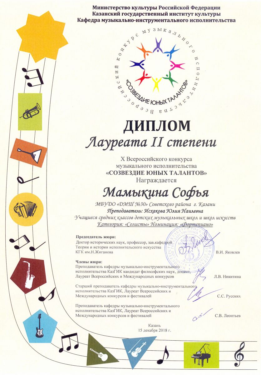 Муниципальное бюджетное учреждение дополнительного образования «Детская музыкальная школа №30» Советского района г.Казани