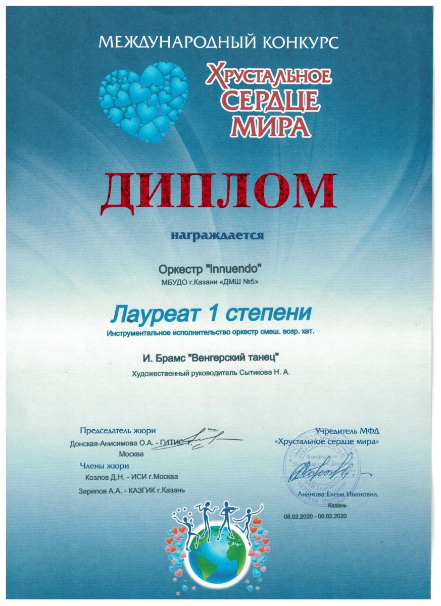 Международный конкурс "Хрустальное сердце мира" - оркестр преподавателей "Innuendo" - руководитель Сытикова Н.А. - I место
