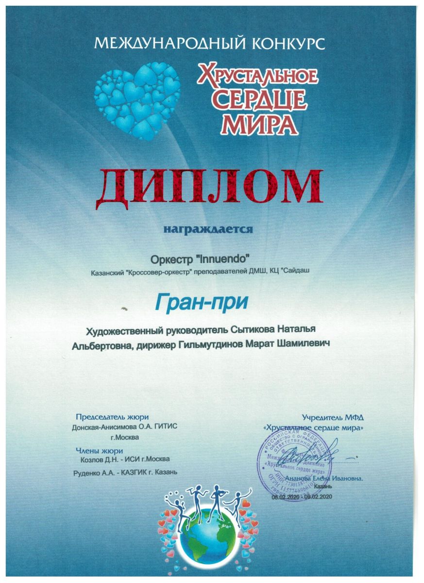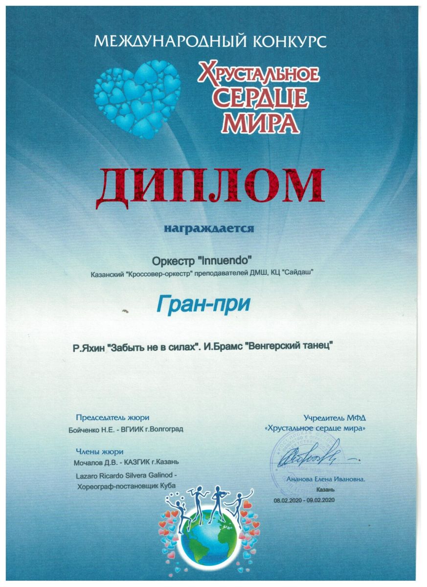 Международный конкурс "Хрустальное сердце мира" - оркестр преподавателей "Innuendo" - Гран-при среди оркестров