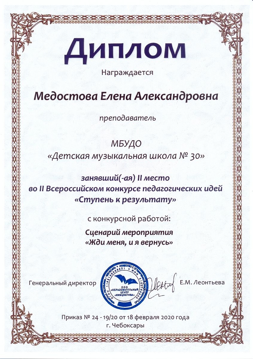 II Всероссийский конкурс педагогических идей "Ступень к результату" - Медостова Е.А. - II место