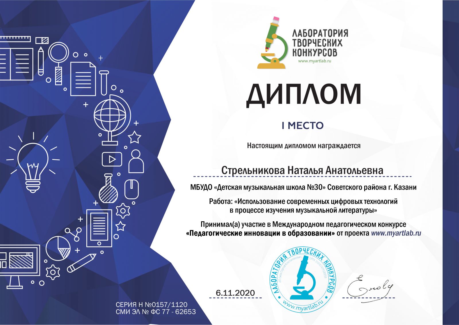 Международный педагогический конкурс "Педагогические инновации в образовании" - Стрельникова Н.А. - I место