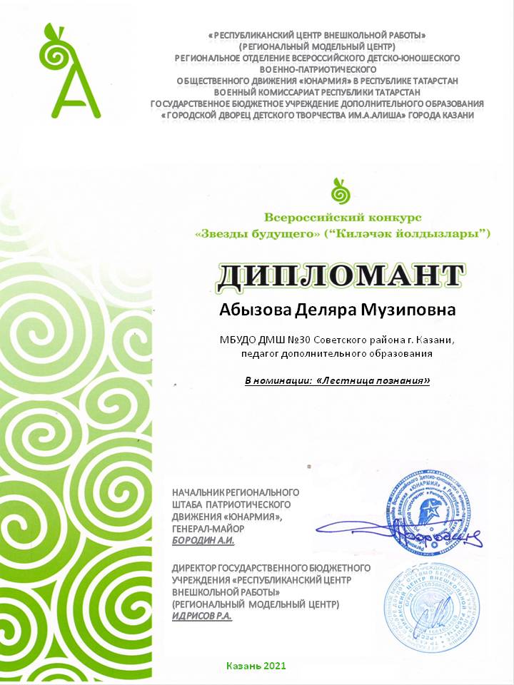 Всероссийский музыкальный конкурс вокально-инструментального творчества "Музыкальная радуга" - Абызова Д.М. - лучший преподаватель