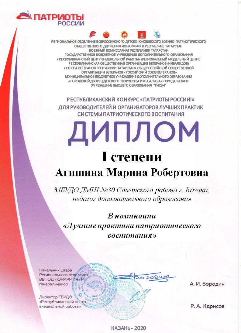 Республиканский конкурс "Патриоты России!" - Агишина М.Р. - диплом в номинации "Лучшее образовательное мероприятие"