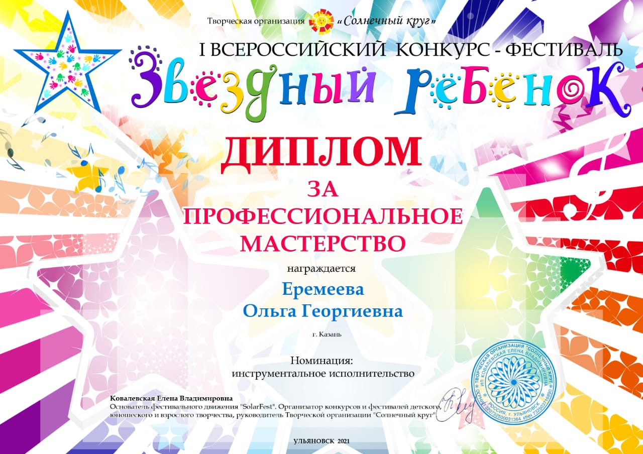 I Всероссийский конкурс-фестиваль "Звездный ребенок" - Еремеева О.Г. - диплом