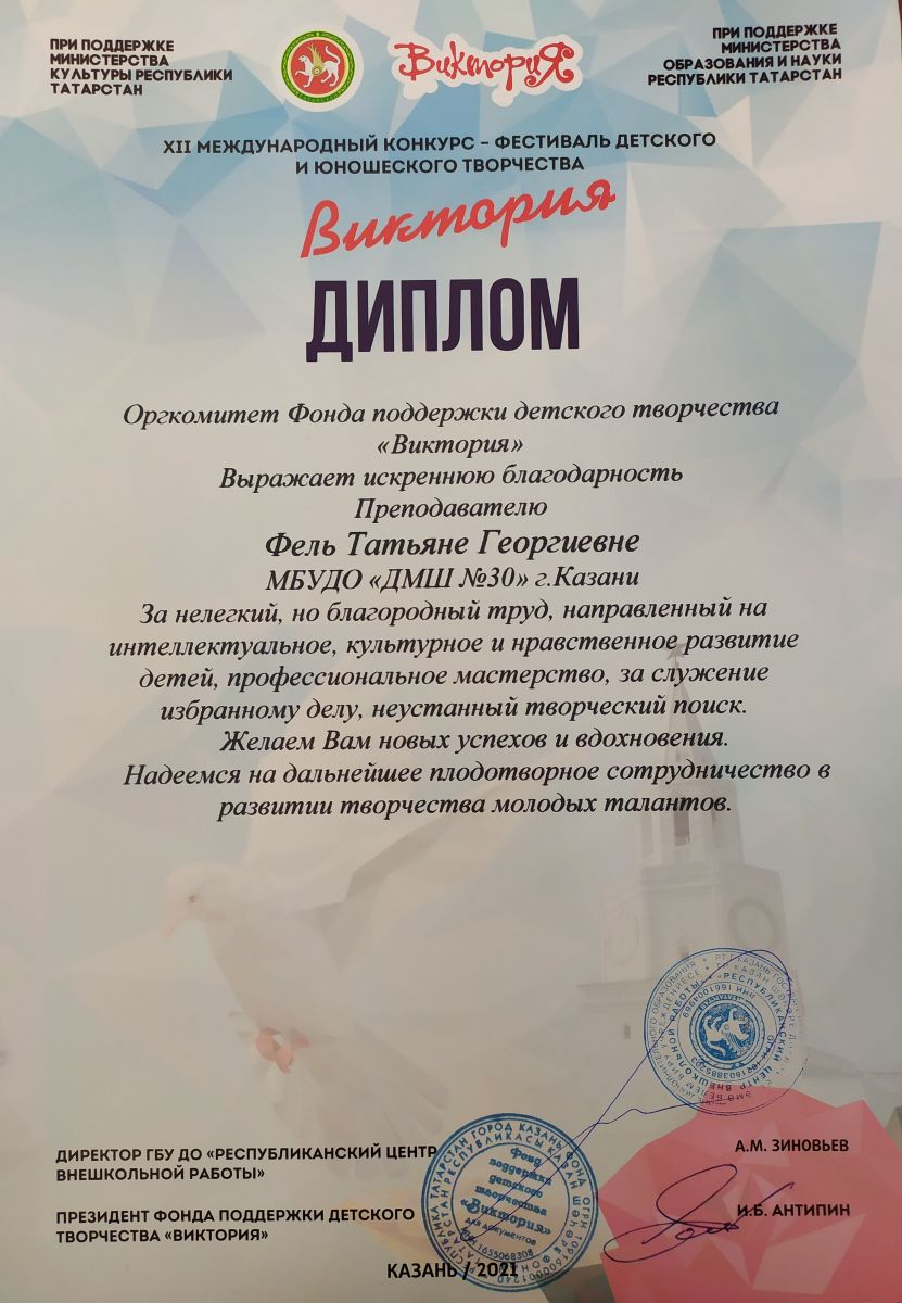 XII Международный конкурс-фестиваль детского и юношеского творчества "Виктория" - Фель Т.Г. - Благодарность