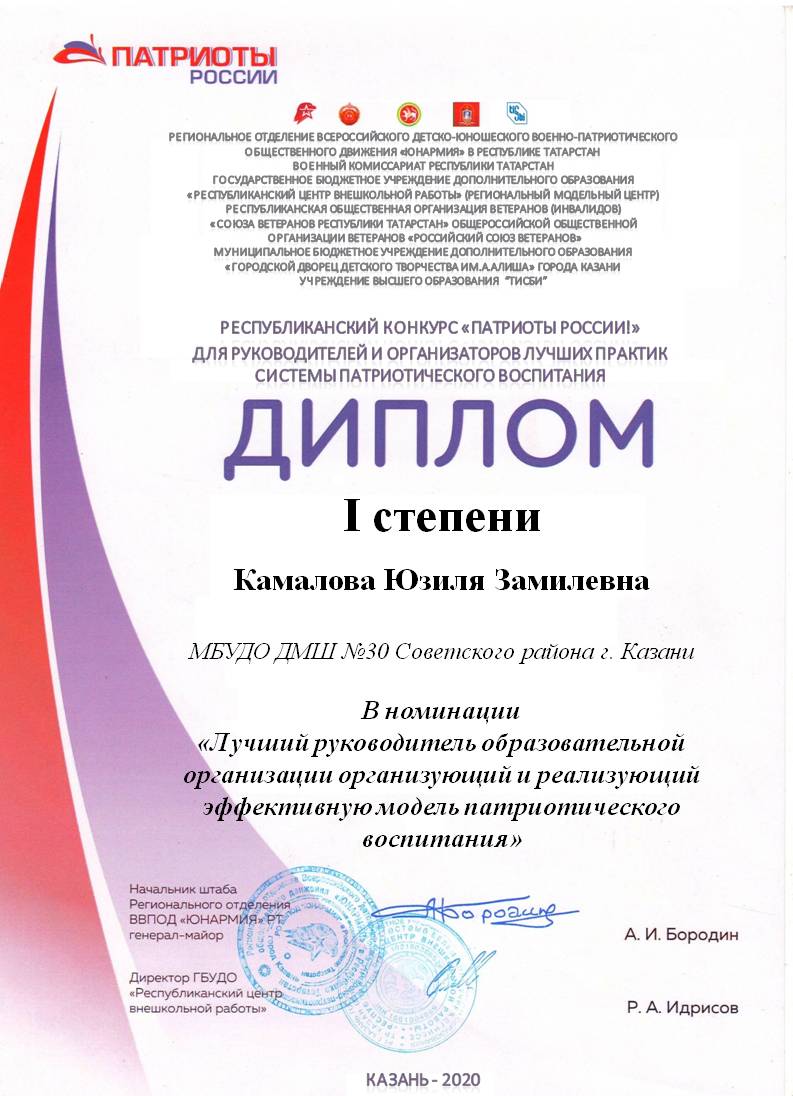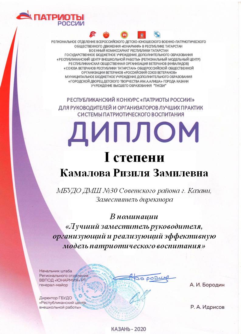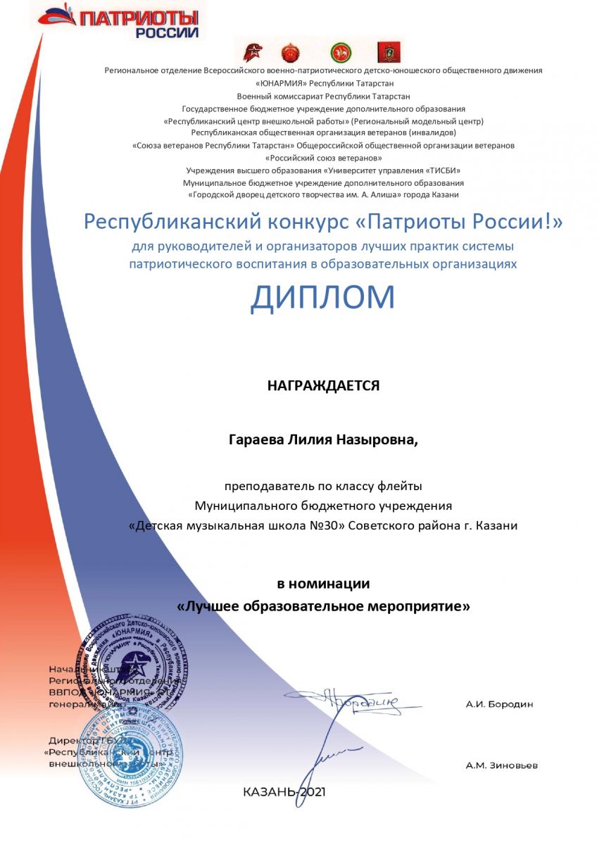 Республиканский конкурс "Патриоты России!" - Гараева Л.Н. - диплом в номинации "Лучшее образовательное мероприятие"