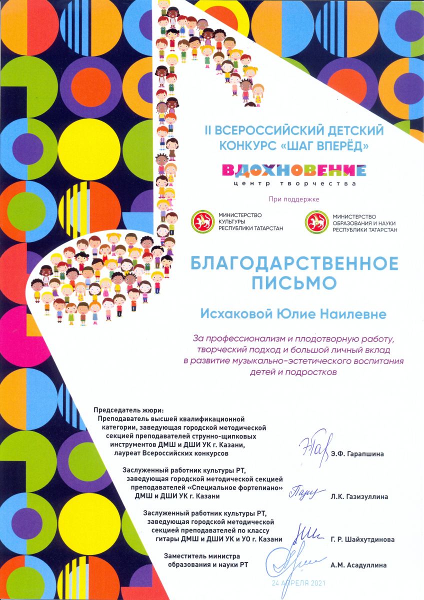 II Всероссийский детский конкурс "Шаг вперед" - Исхакова Ю.Н. - Благодарственное письмо
