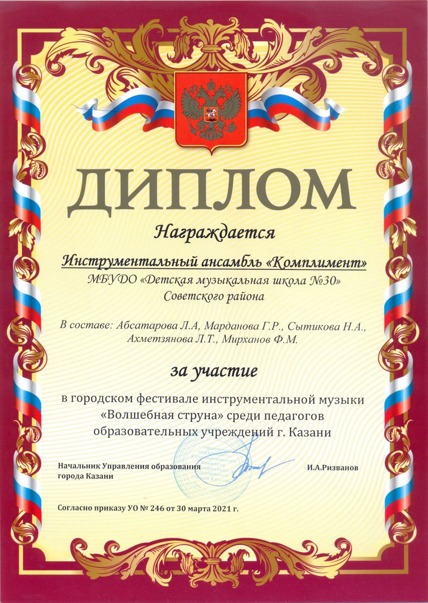 Муниципальное бюджетное учреждение дополнительного образования «Детская музыкальная школа №30» Советского района г.Казани