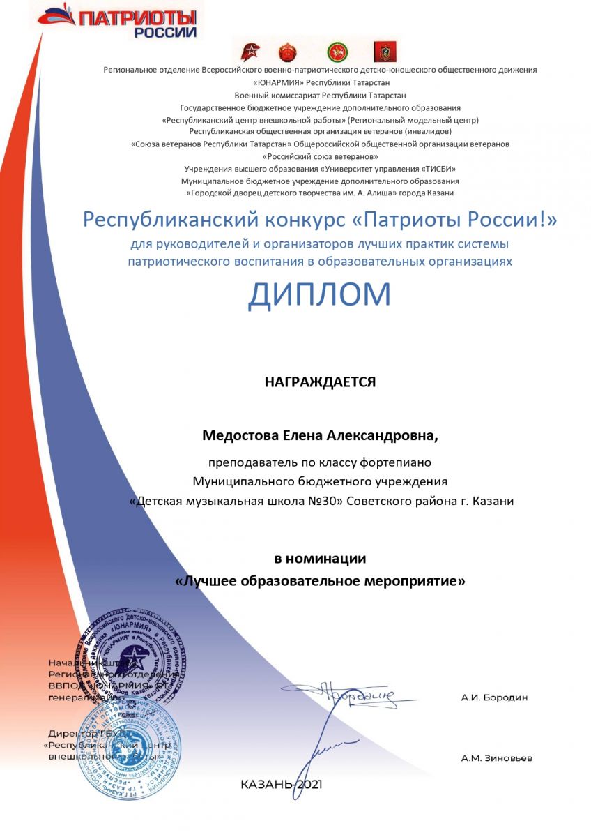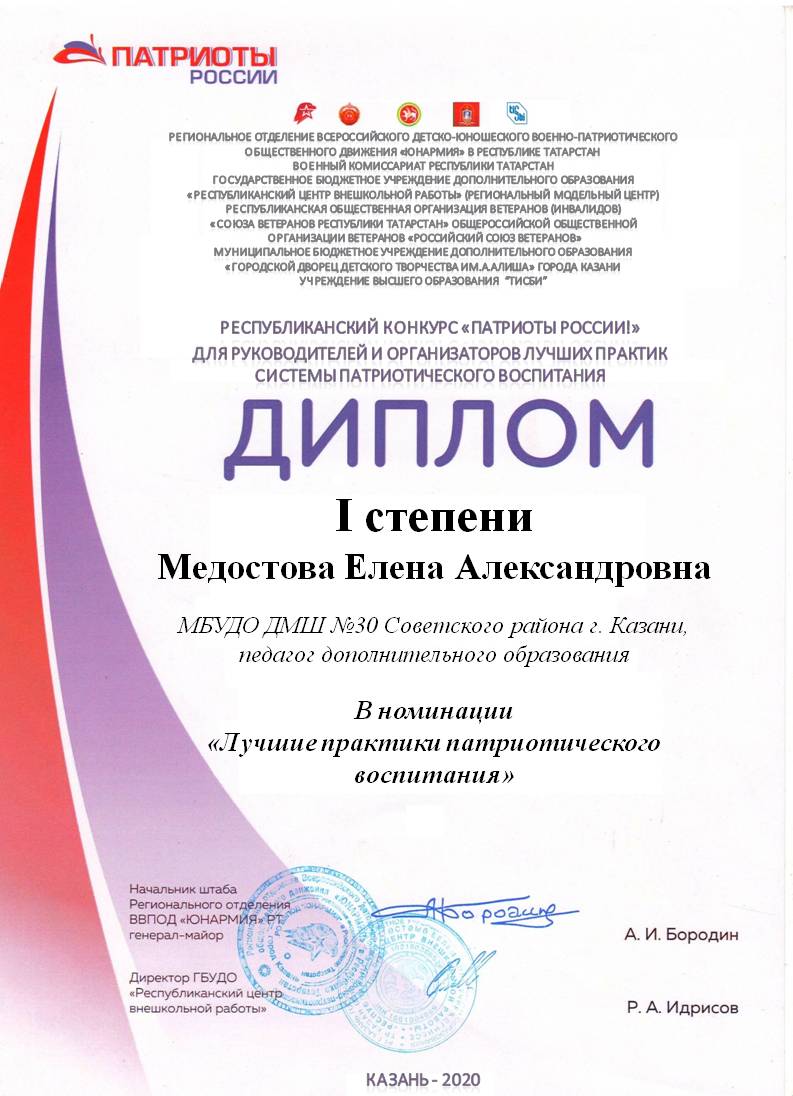 Республиканский конкурс "Патриоты России!" - Медостова Е.А. - диплом в номинации "Лучшее образовательное мероприятие"