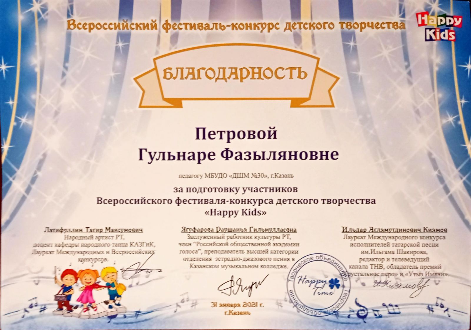 Всероссийский фестиваль-конкурс детского творчества "Happy Kids" - Петрова Г.Ф. - Благодарность