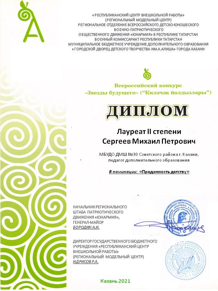 Республиканский конкурс "Патриоты России!" - Сергеев М.П. - диплом в номинации "Лучшее образовательное мероприятие"