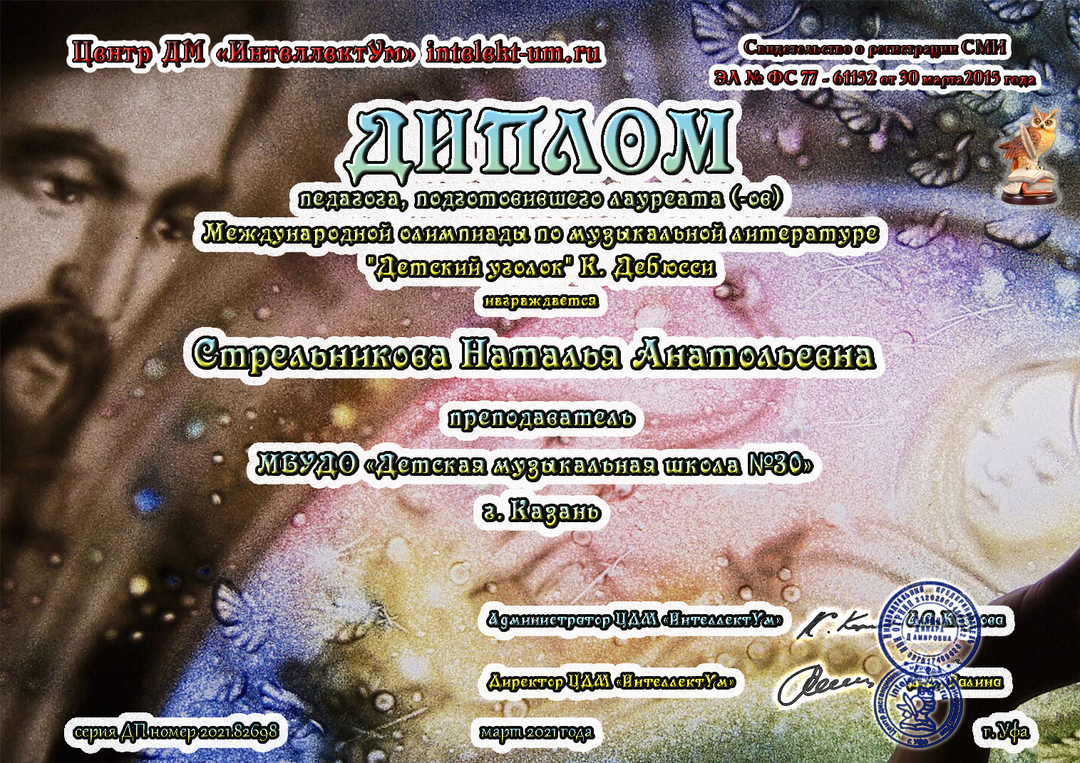 Всероссийский конкурс "Академия искусств" - Стрельникова Н.А. - диплом Лучший преподаватель