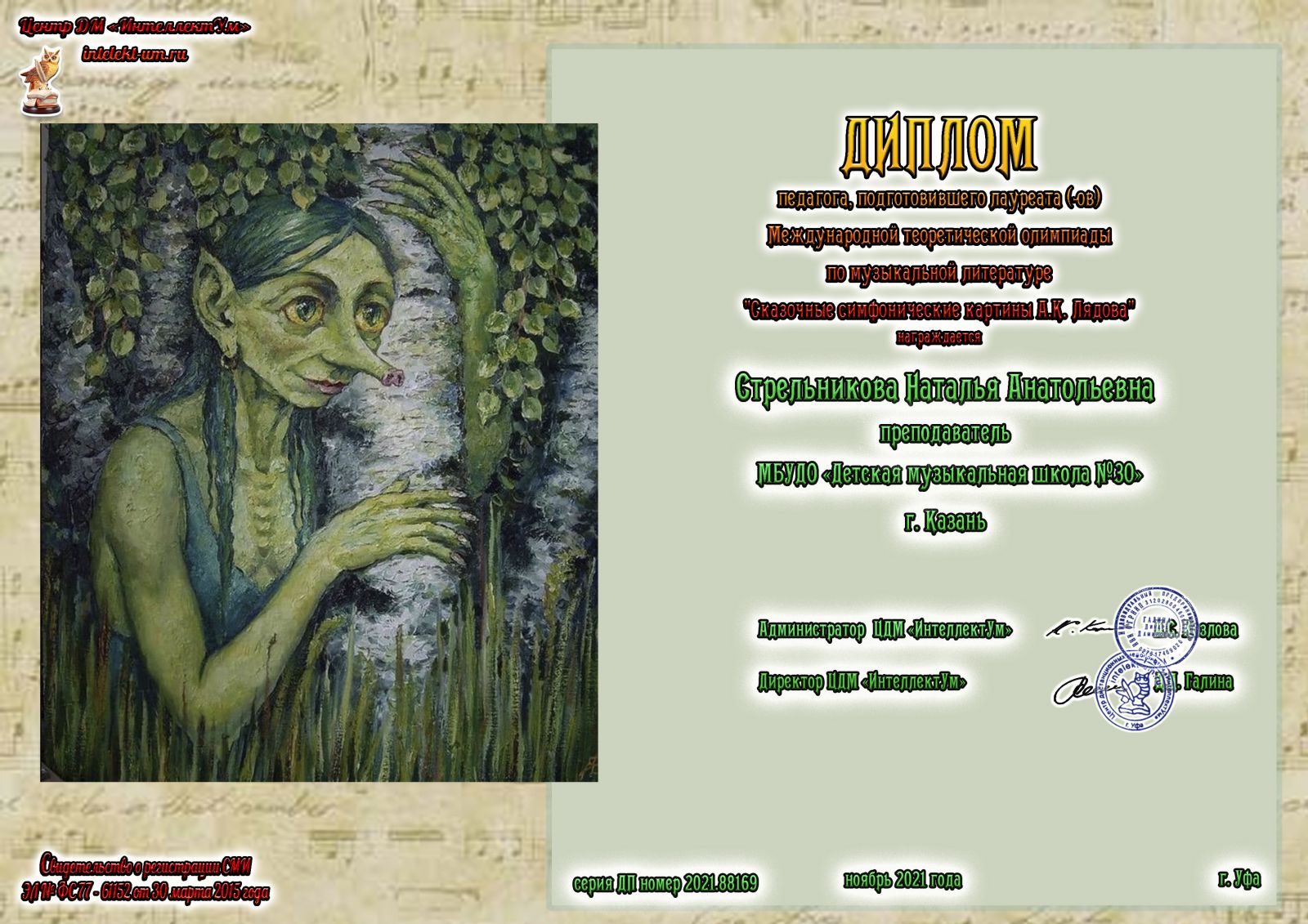 Международная творческая олимпиада по музыкальной литературе "Сказочные симфонические картины А.К.Лядова" - Стрельникова Н.А. - диплом