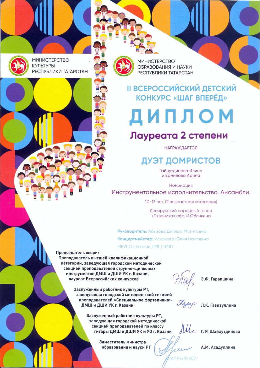 II Всероссийский детский конкурс "Шаг вперед" - дуэт домристов Гайнутдинова Илина, Ермилова Арина - II место