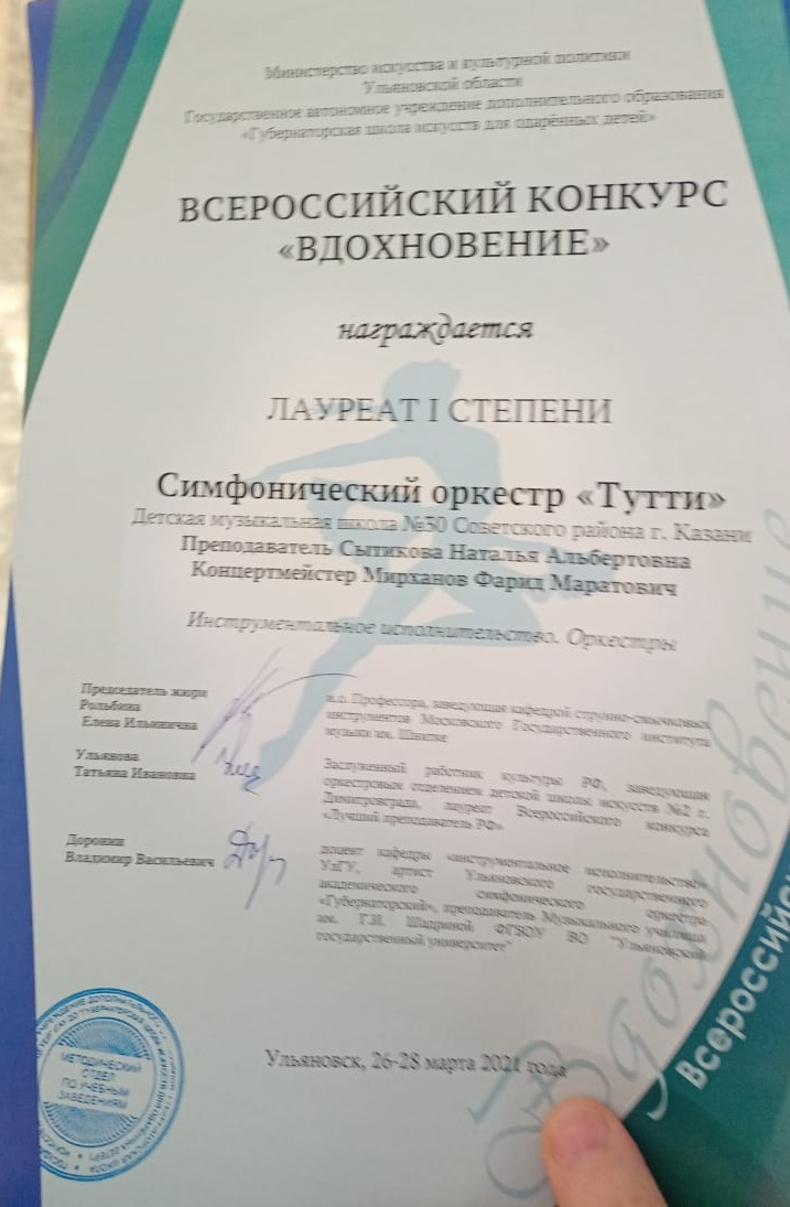 Всероссийский конкурс "Вдохновение" - Симфонический оркестр "Tutti" - I  место