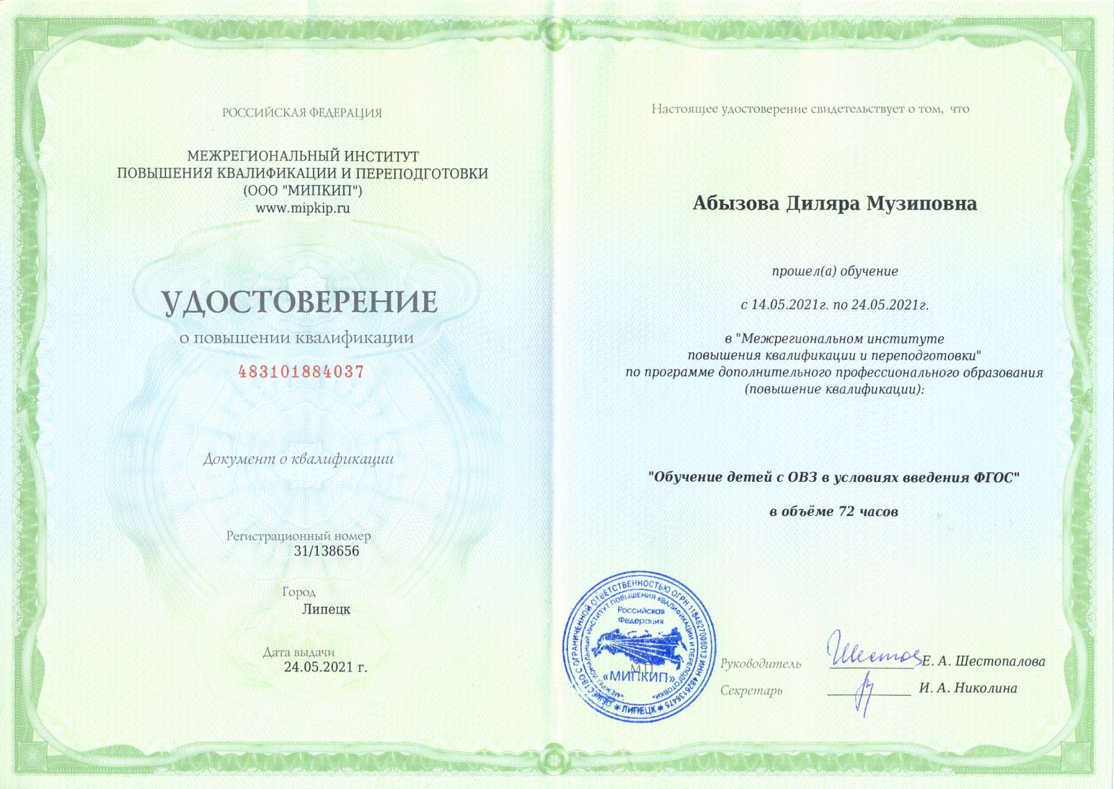 Количество преподавателей, обучающихся на курсах по осуществлению образовательной деятельности с детьми с ОВЗ