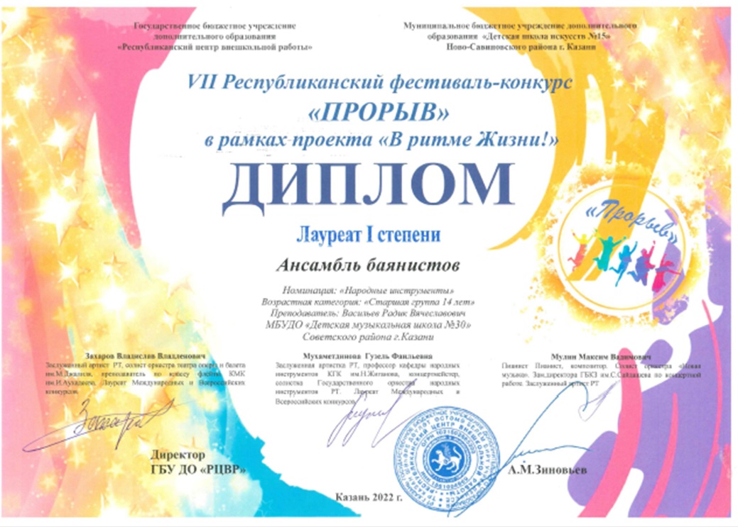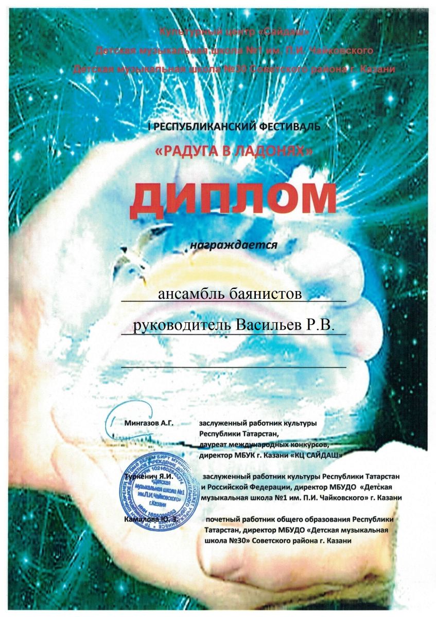I Республиканский фестиваль "Радуга в ладонях" - ансамбль баянистов - диплом