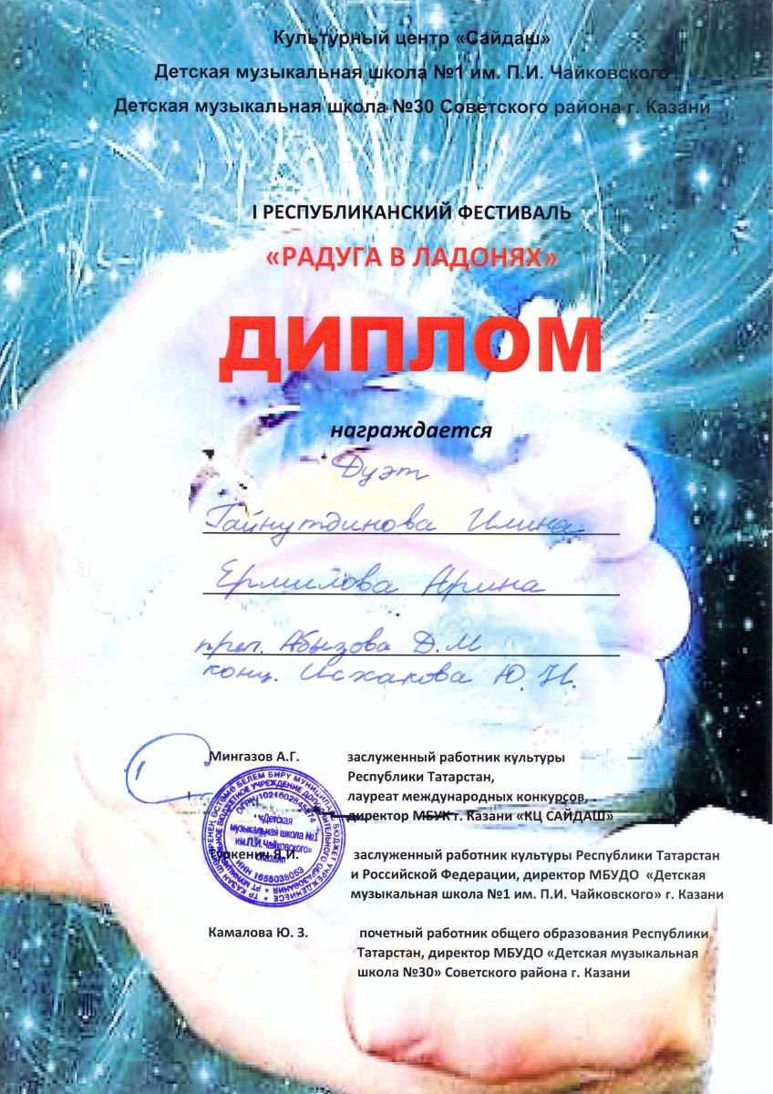 I Республиканский фестиваль "Радуга в ладонях" - дуэт домристов - диплом