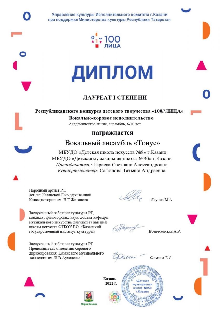 Республиканский конкурс детского творчества "100//ЛИЦА" - вокальный ансамбль "Тонус" - I место