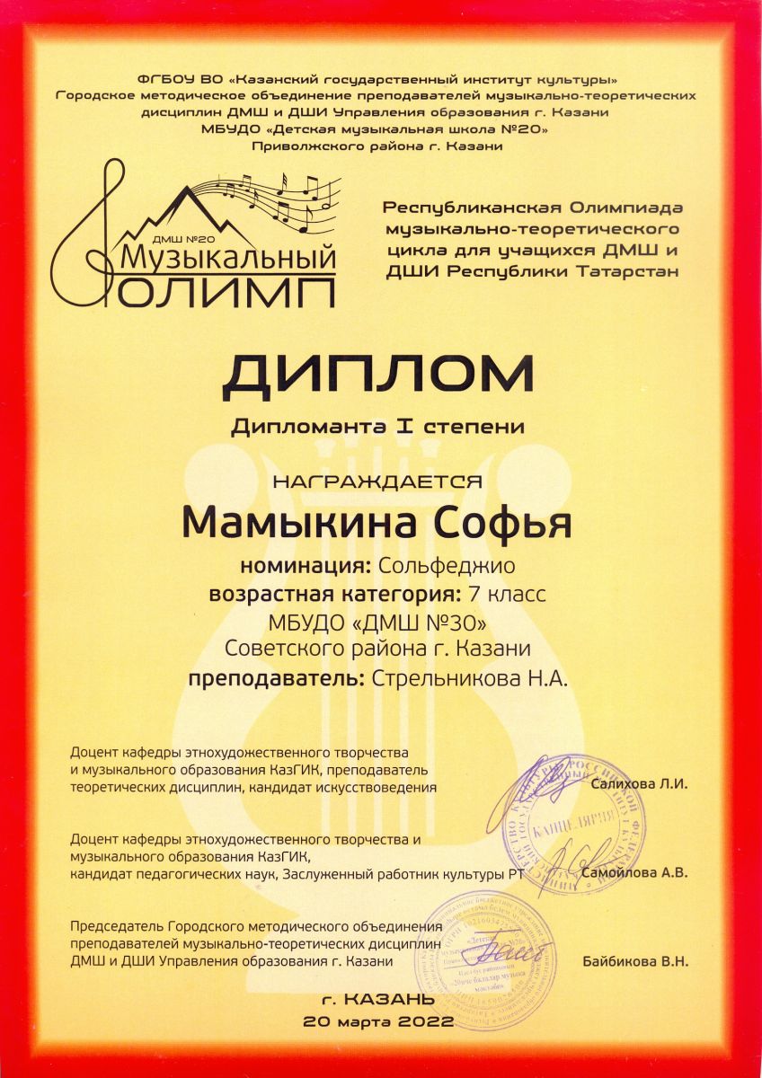 VII Республиканский конкурс исполнительского искусства "FORTE" - Мамыкина Софья - I место