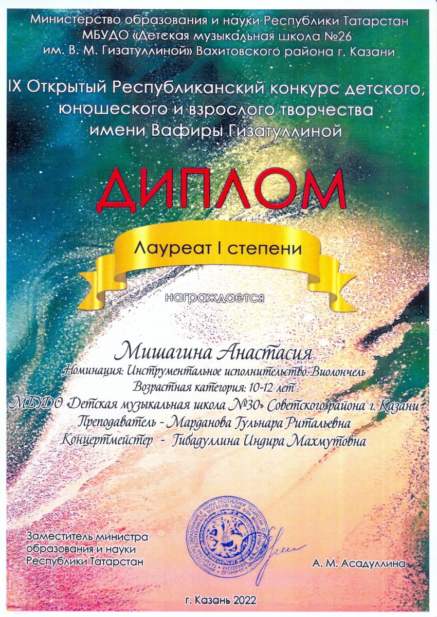 VII Республиканский конкурс исполнительского искусства "FORTE" - Мисбахова Сафина - III место