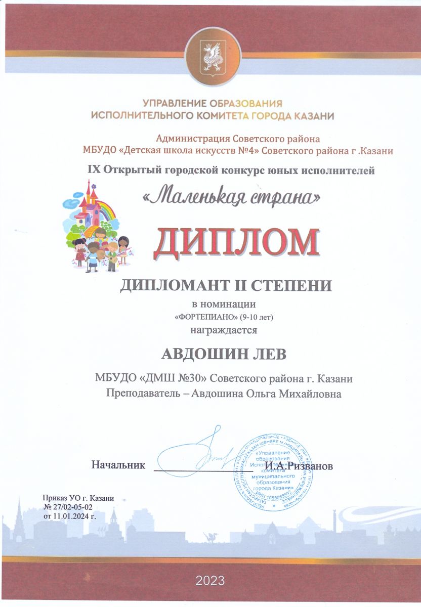 IX Открытый городской конкурс юных исполнителей "Маленькая страна" - Авдошин Лев - диплом II степени