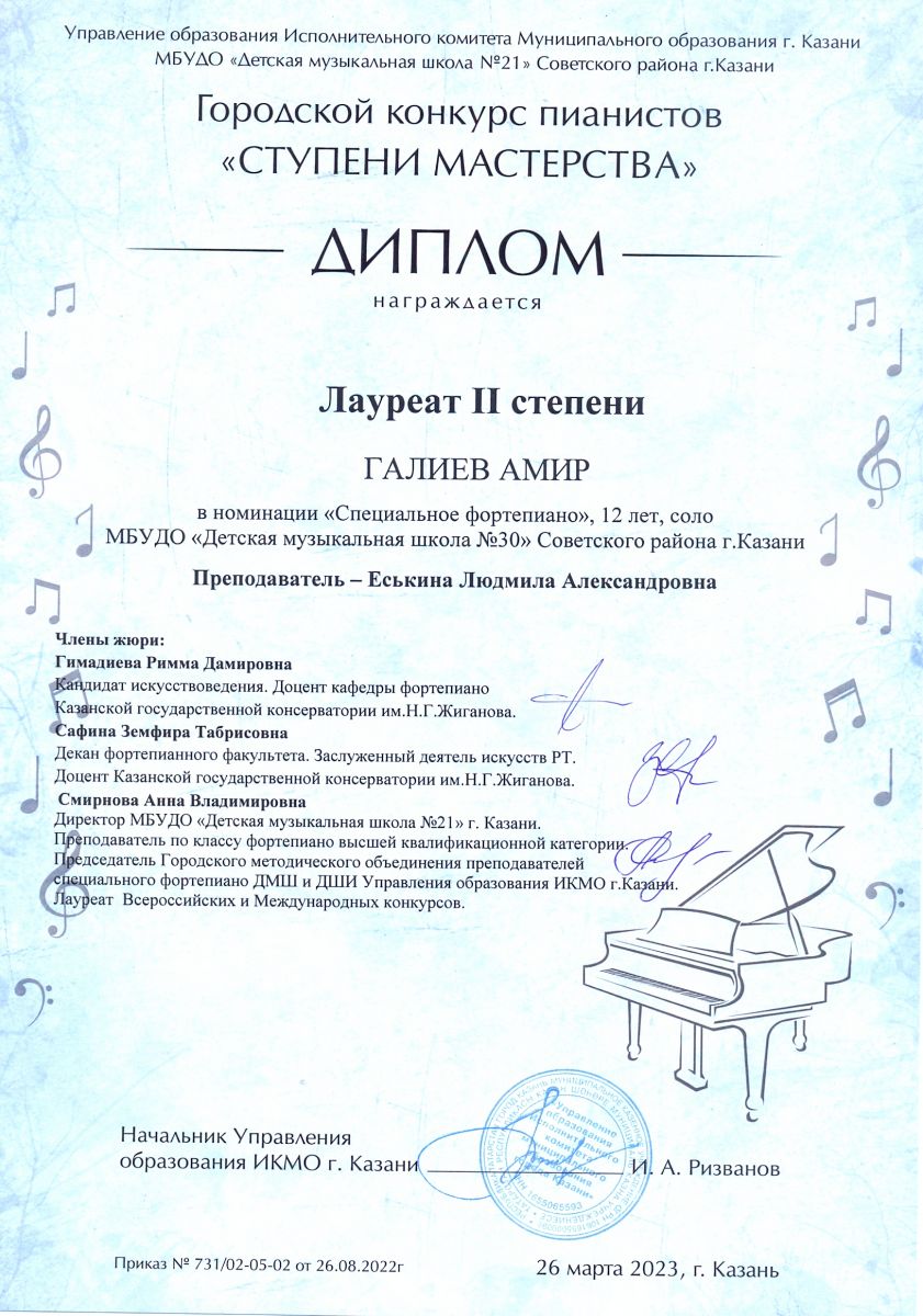 Городской конкурс пианистов "Ступени мастерства" - Галиев Амир - II место