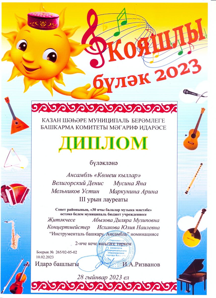 III Городской конкурс "Звуки мира" - Ибрагимов Хайдар - диплом