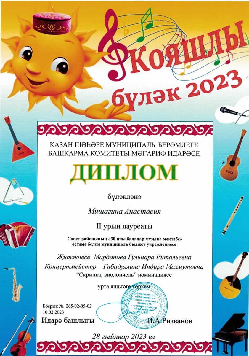 Городской конкурс юных исполнителей татарской музыки "Кояшлы буләк" - Мишагина Анастасия - II место