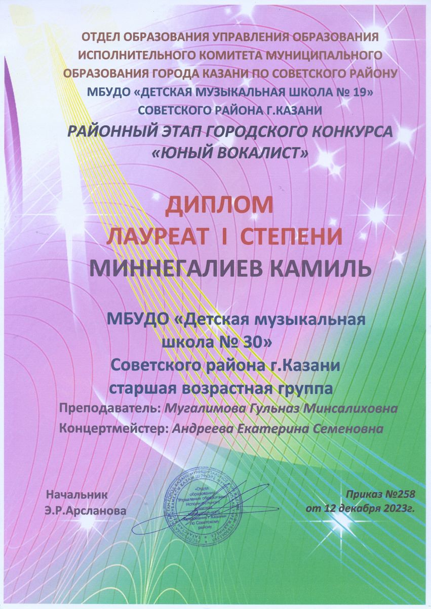 Районный этап городского конкурса "Юный вокалист" - Миннегалиев Камиль - I место