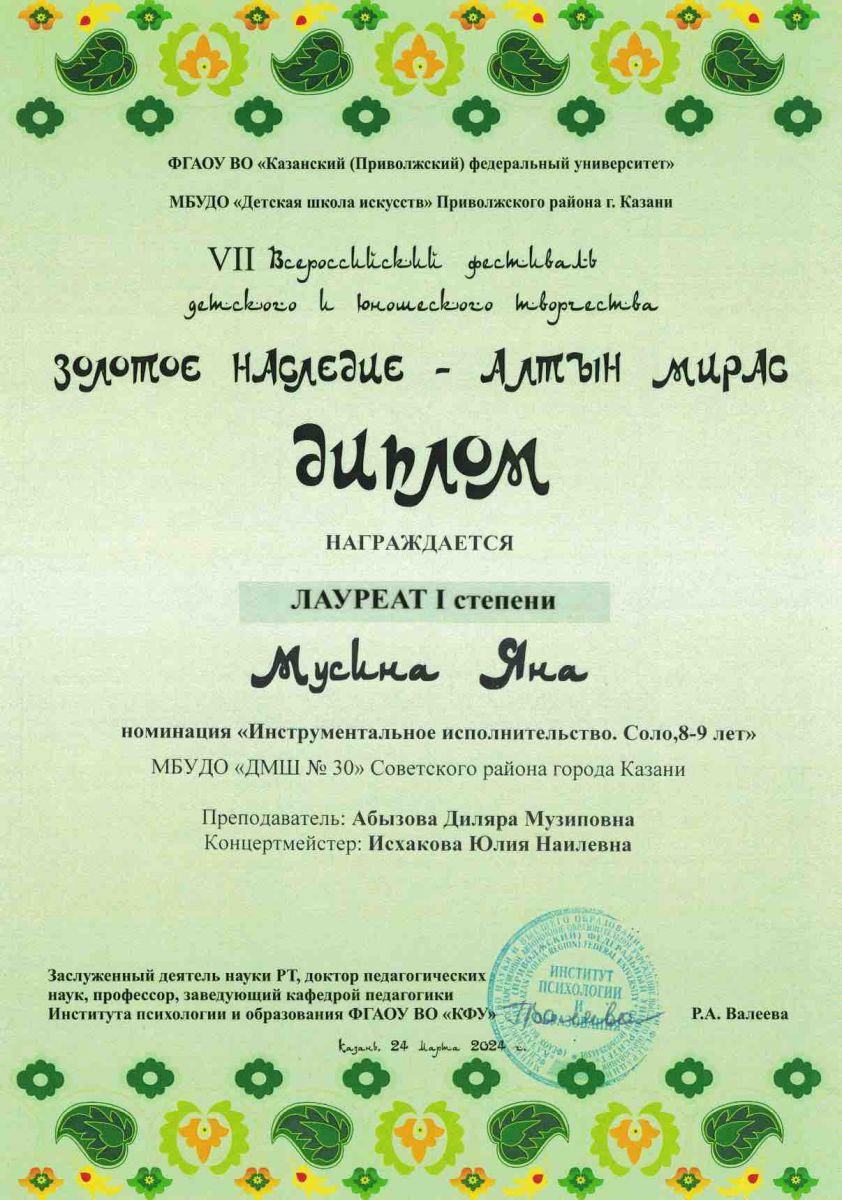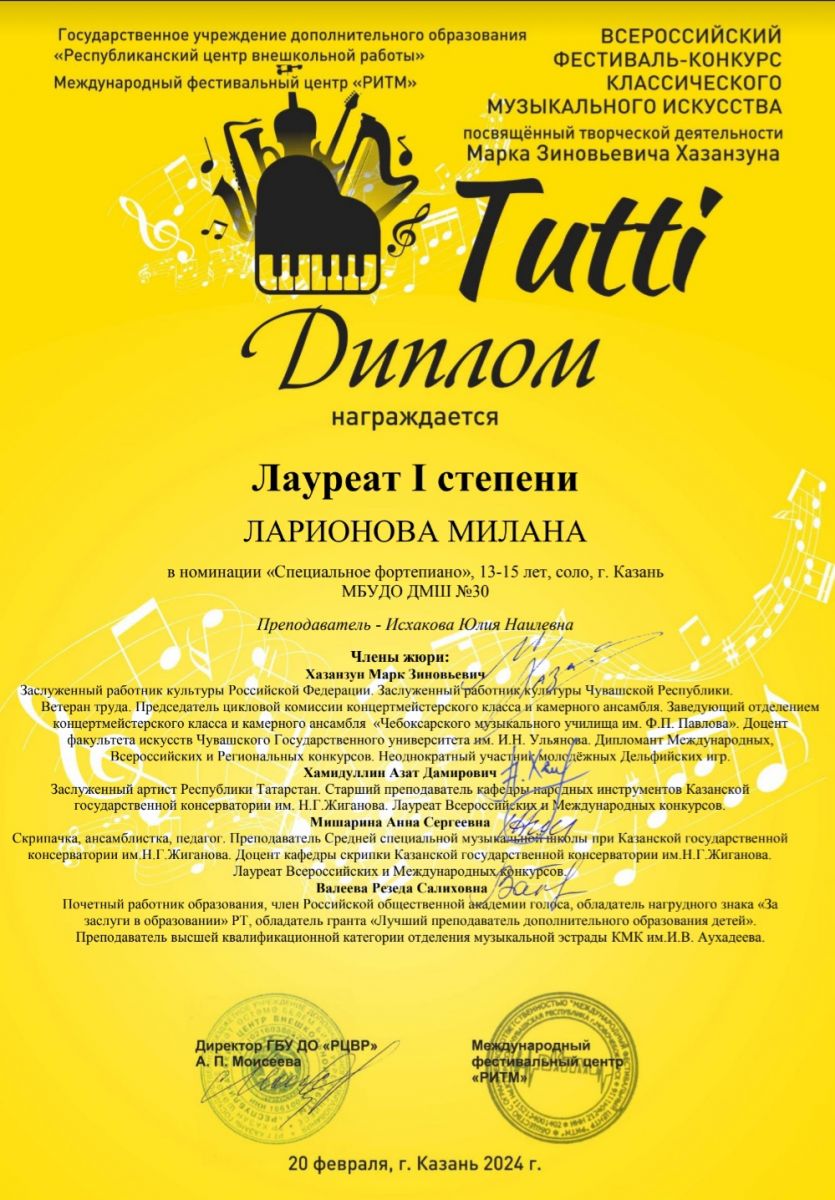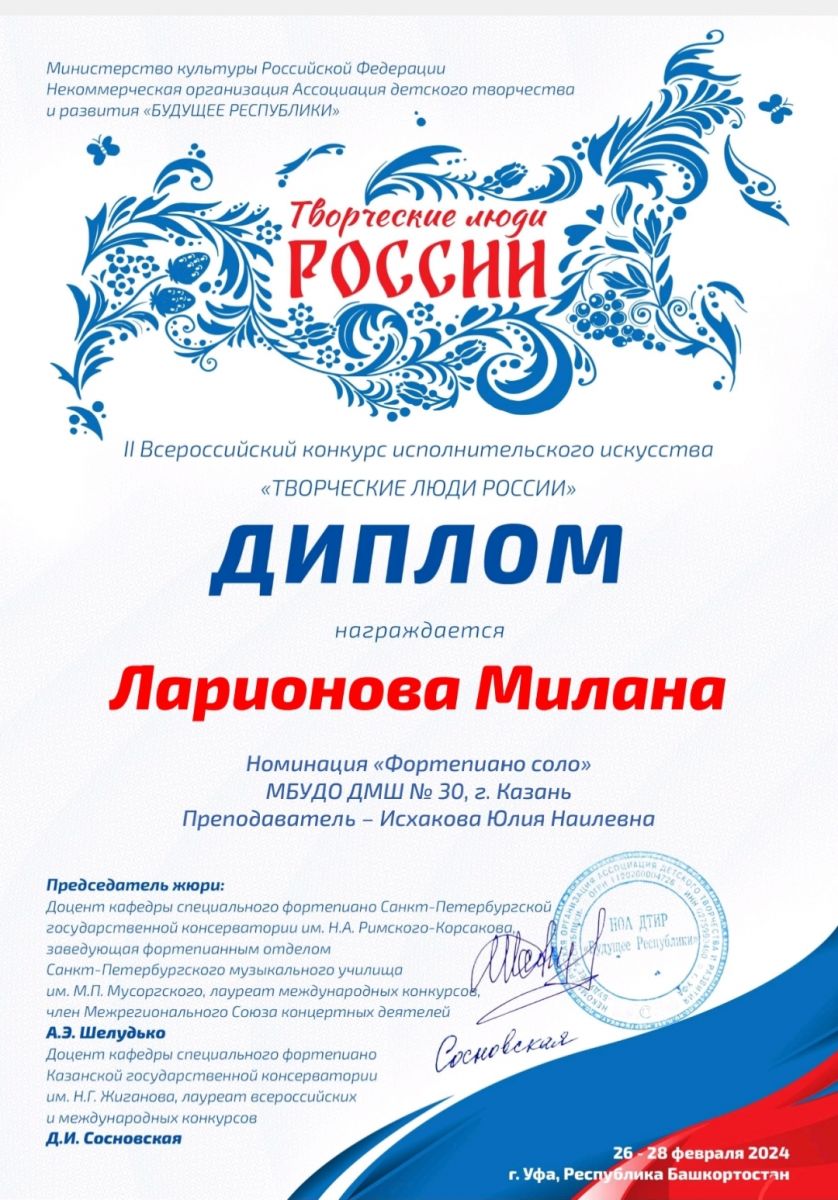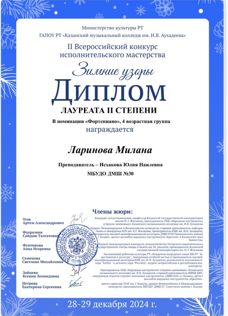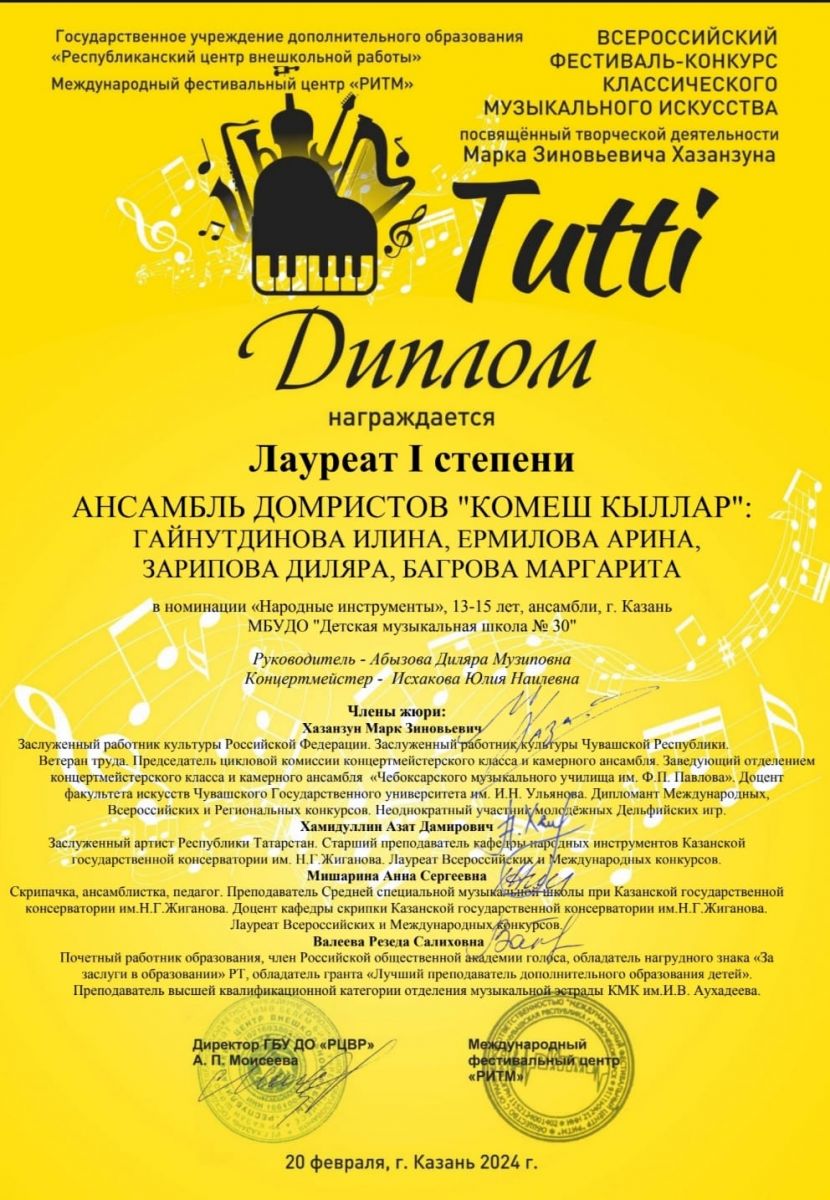 Муниципальное бюджетное учреждение дополнительного образования «Детская музыкальная школа №30» Советского района г.Казани